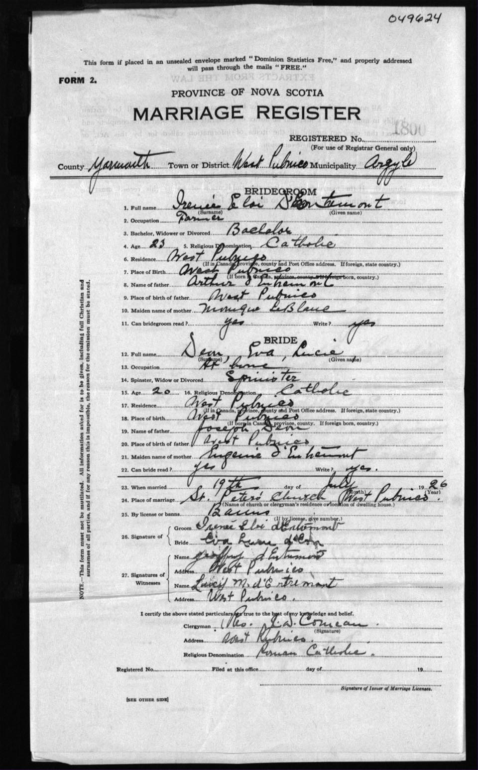 Registration: Year: 1926 number: 49624