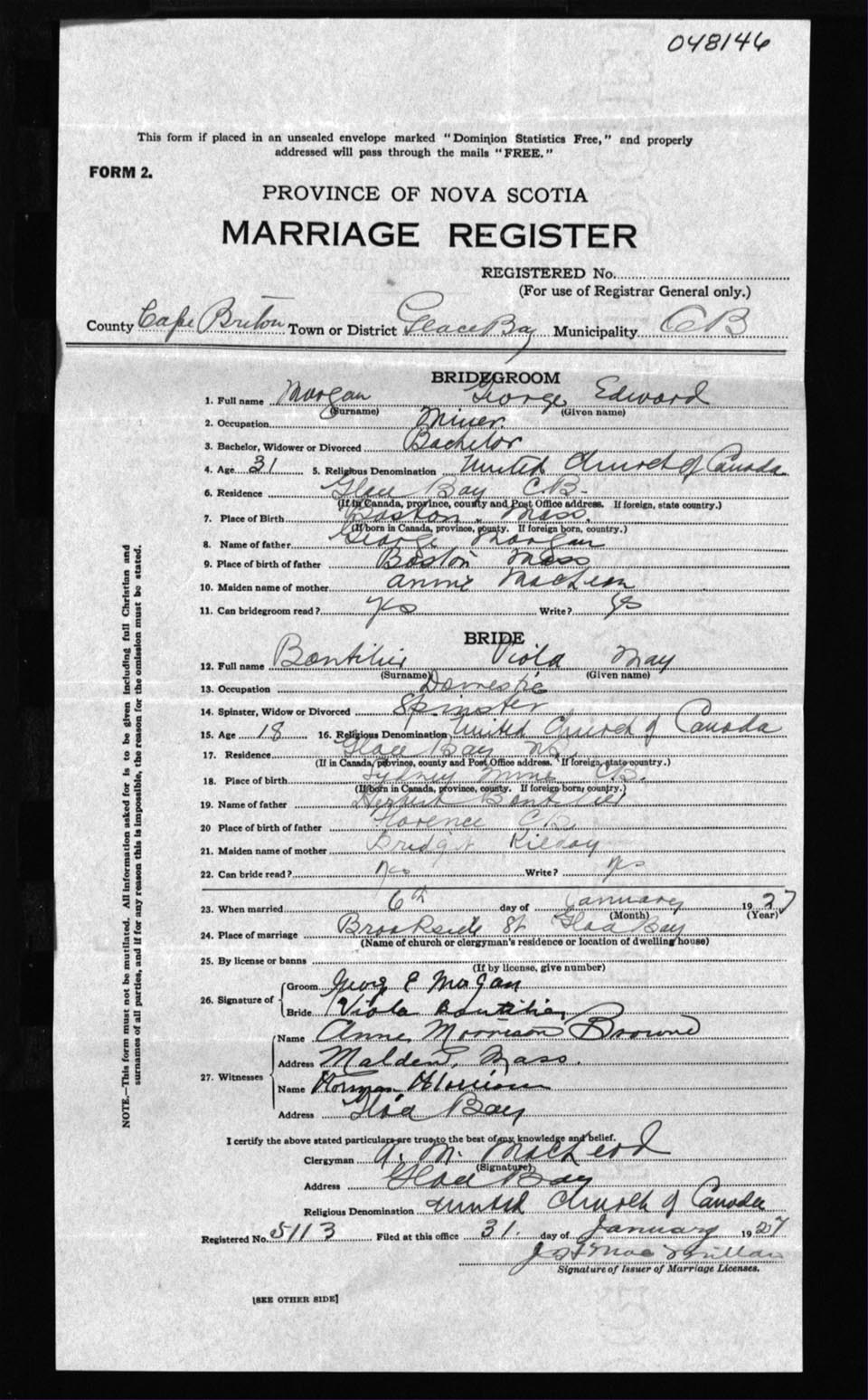 Registration: Year: 1927 number: 48146