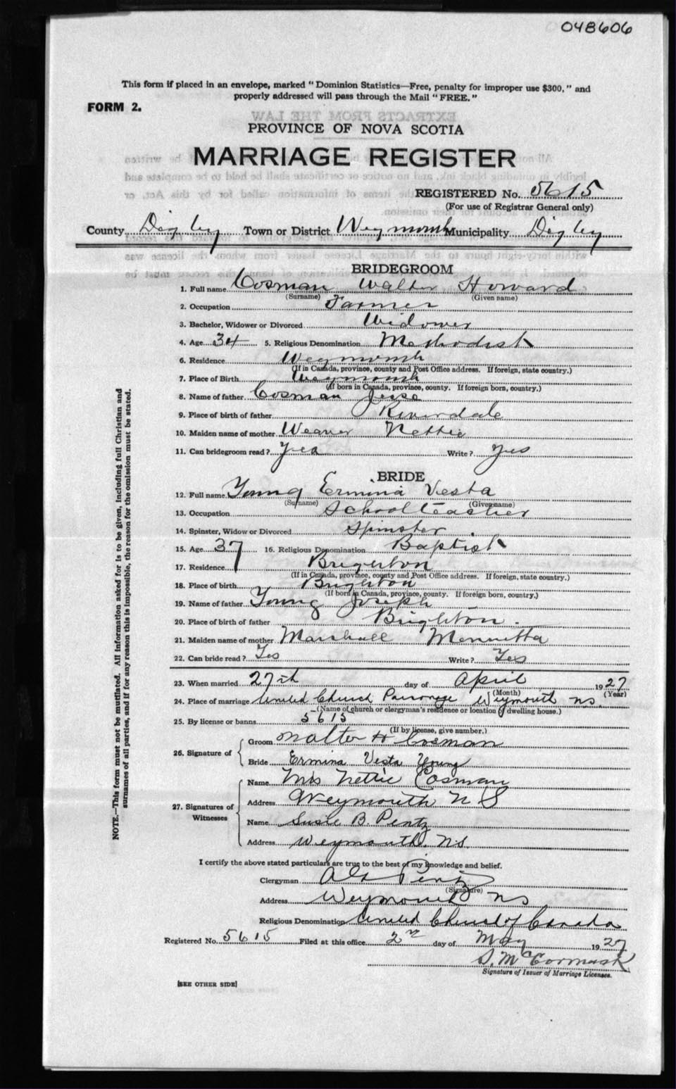Registration: Year: 1927 number: 48606