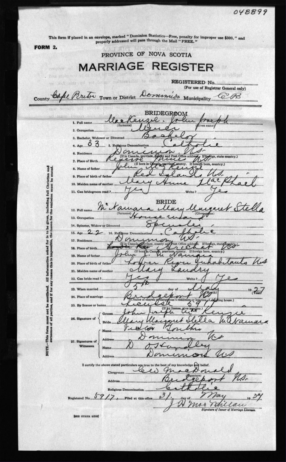 Registration: Year: 1927 number: 48899