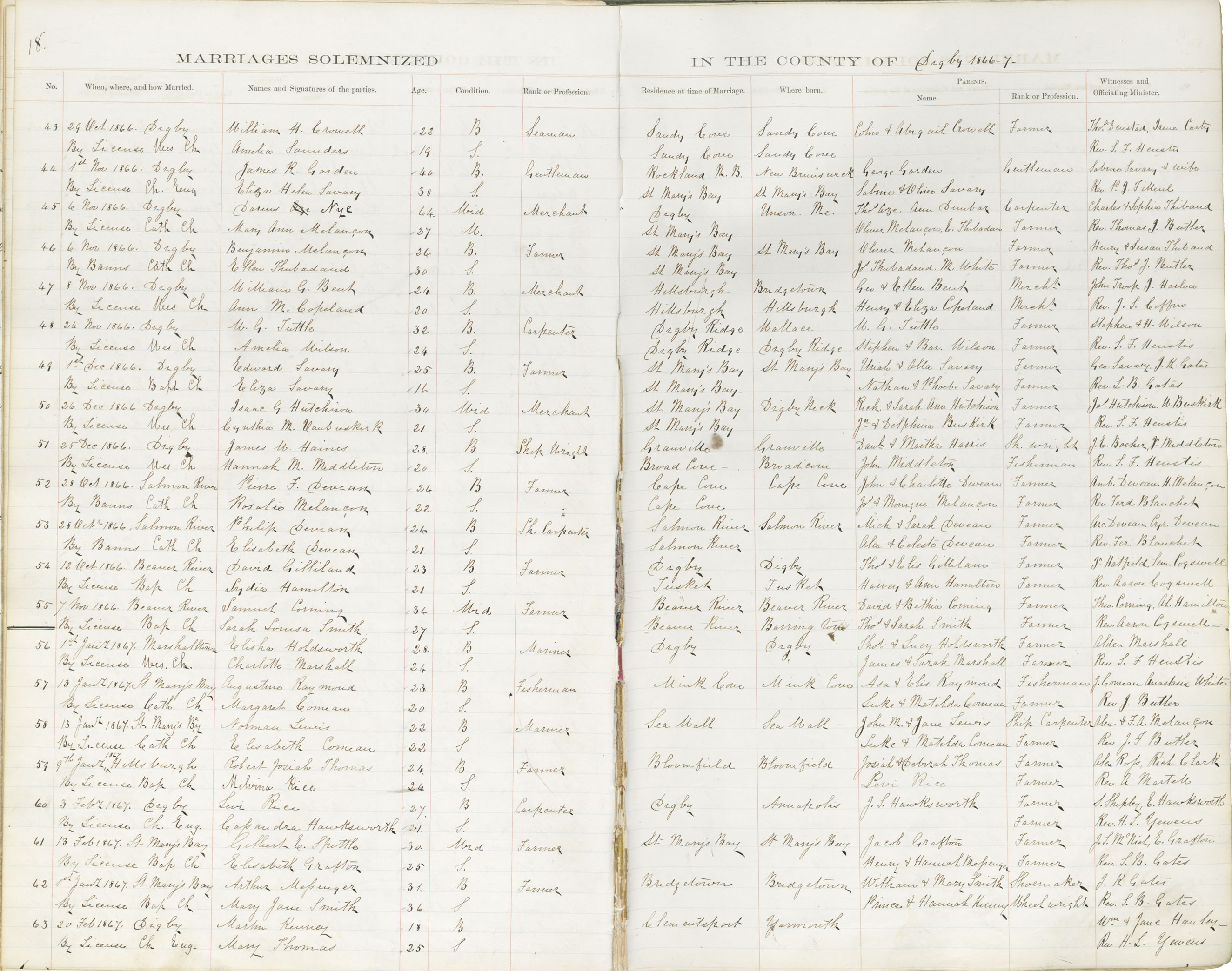 Registration: Year: 1867 book: 1812 page: 18 number: 63