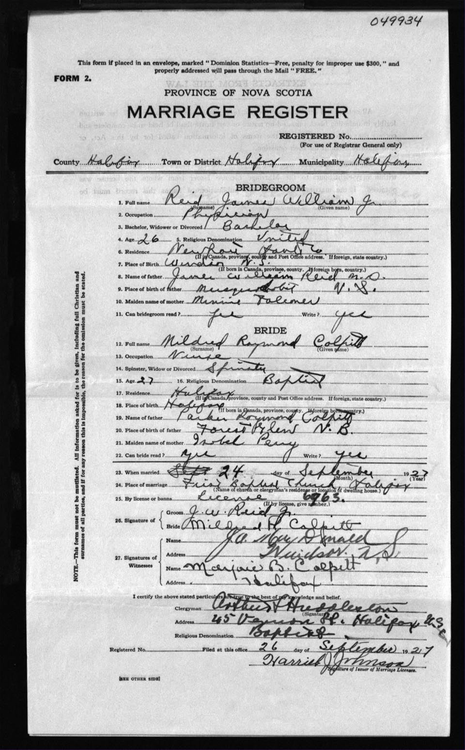 Registration: Year: 1927 number: 49934