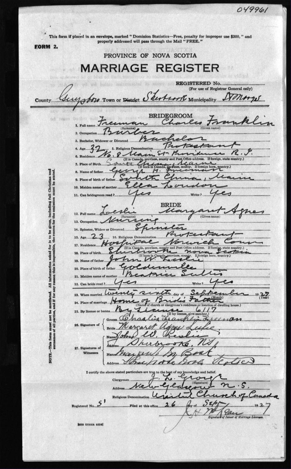 Registration: Year: 1927 number: 49961
