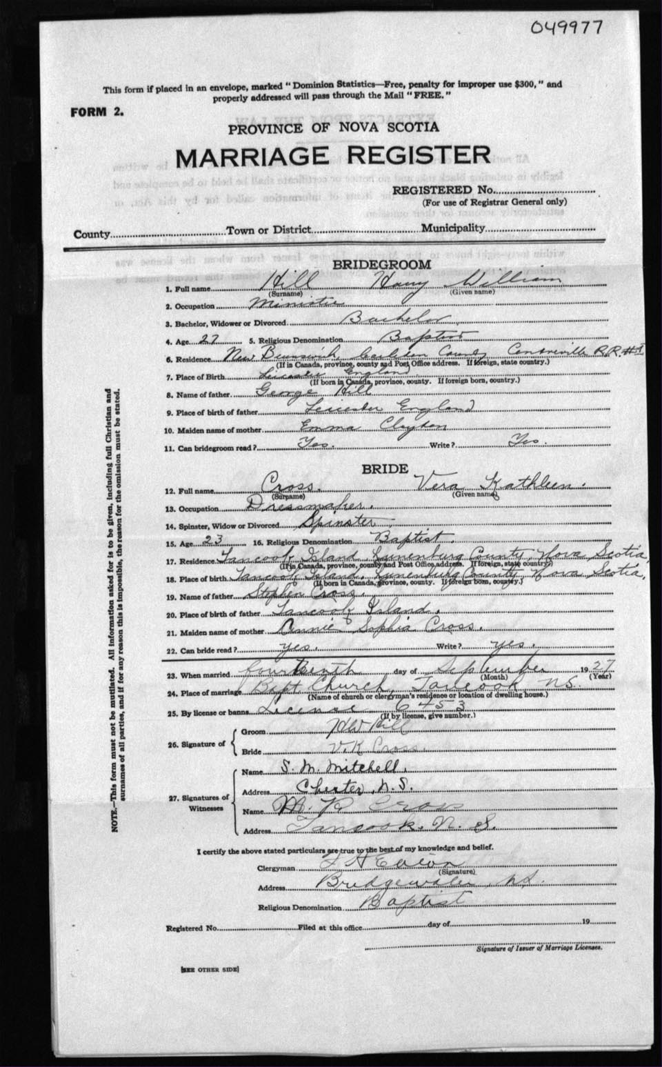 Registration: Year: 1927 number: 49977