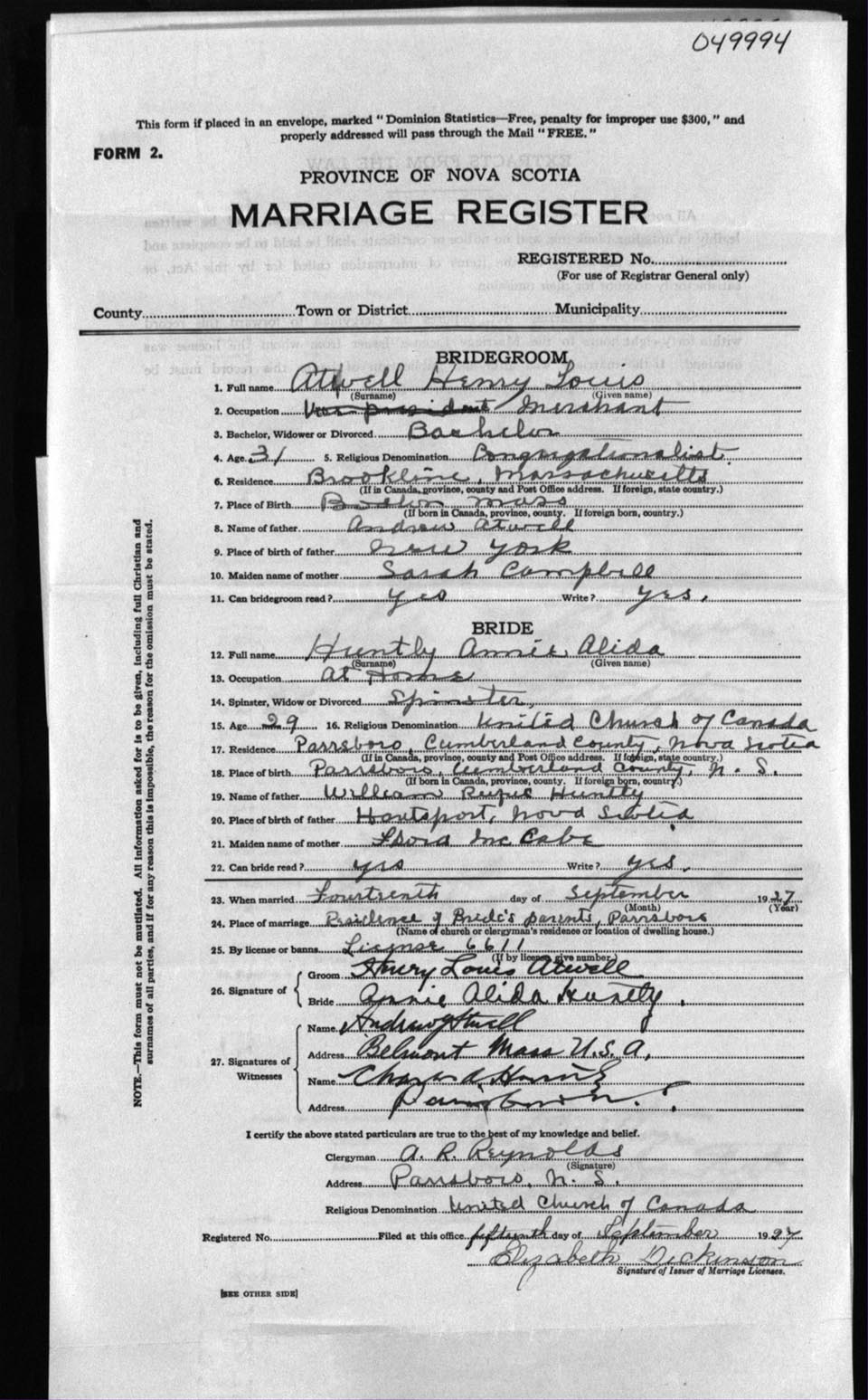 Registration: Year: 1927 number: 49994