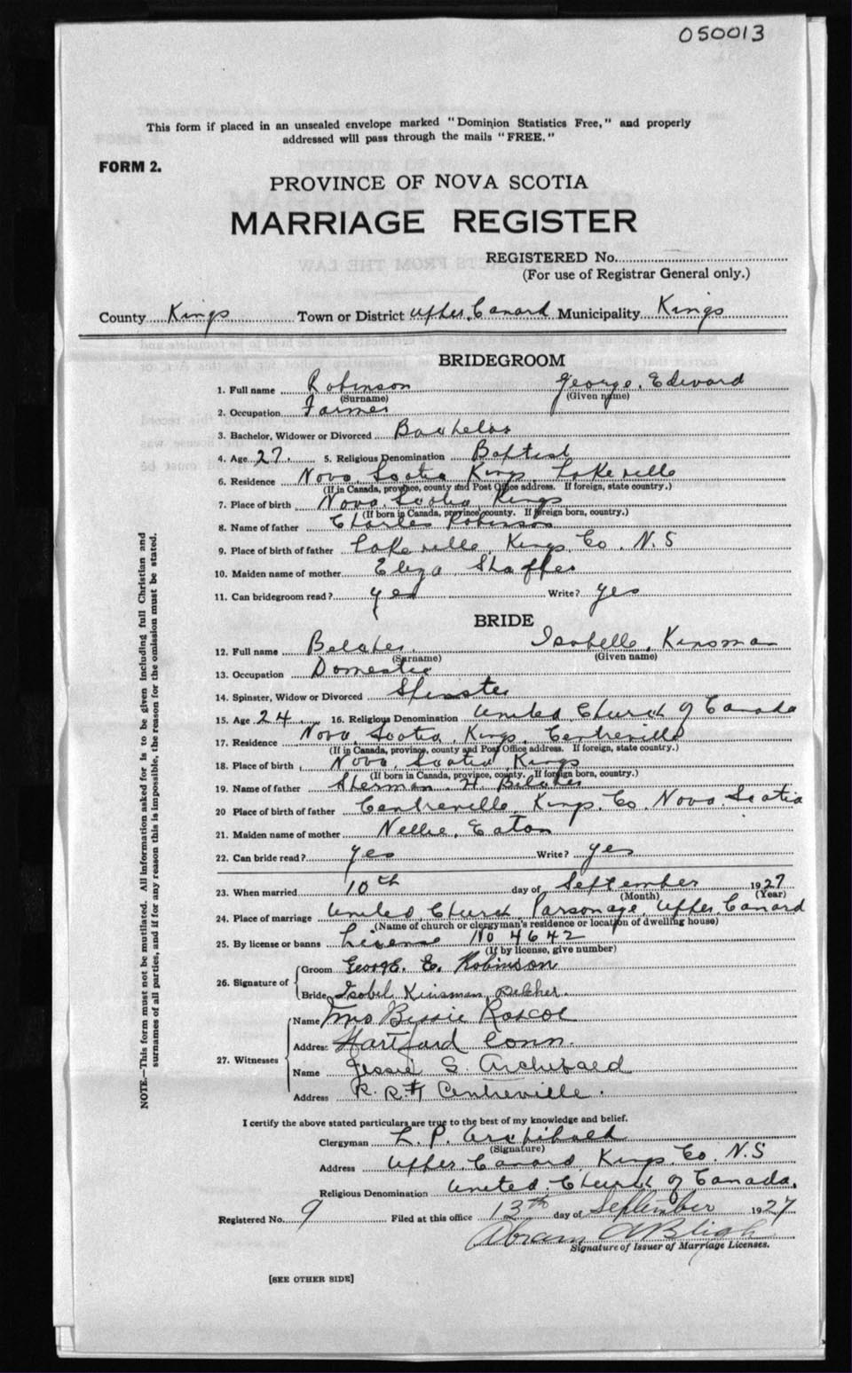 Registration: Year: 1927 number: 5013
