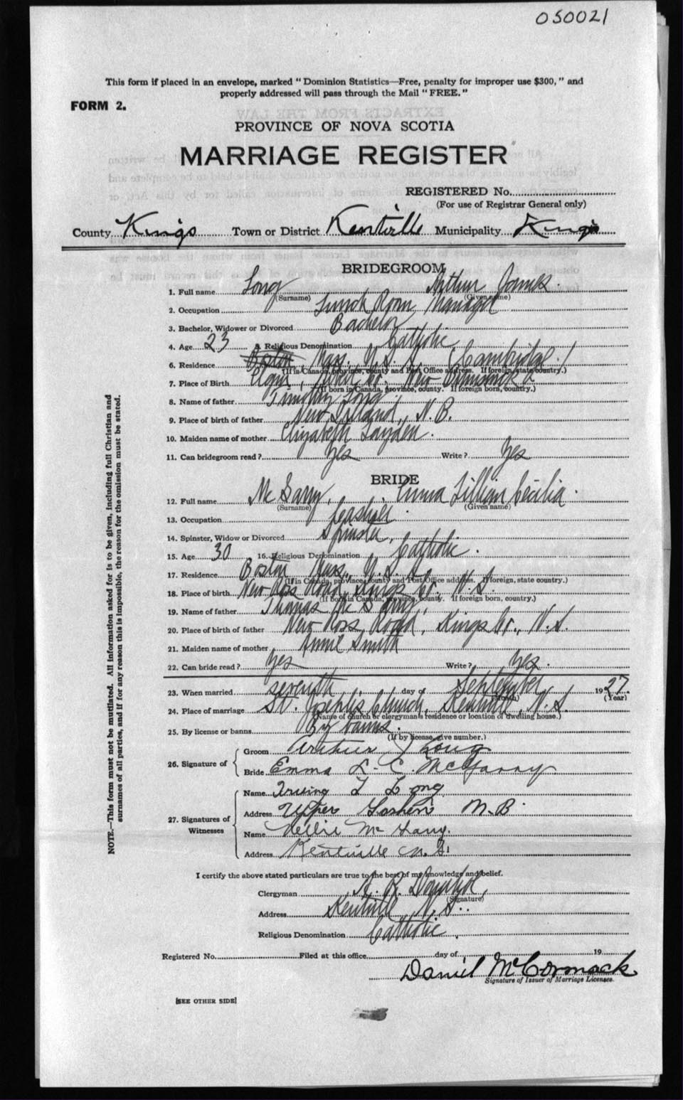 Registration: Year: 1927 number: 5021