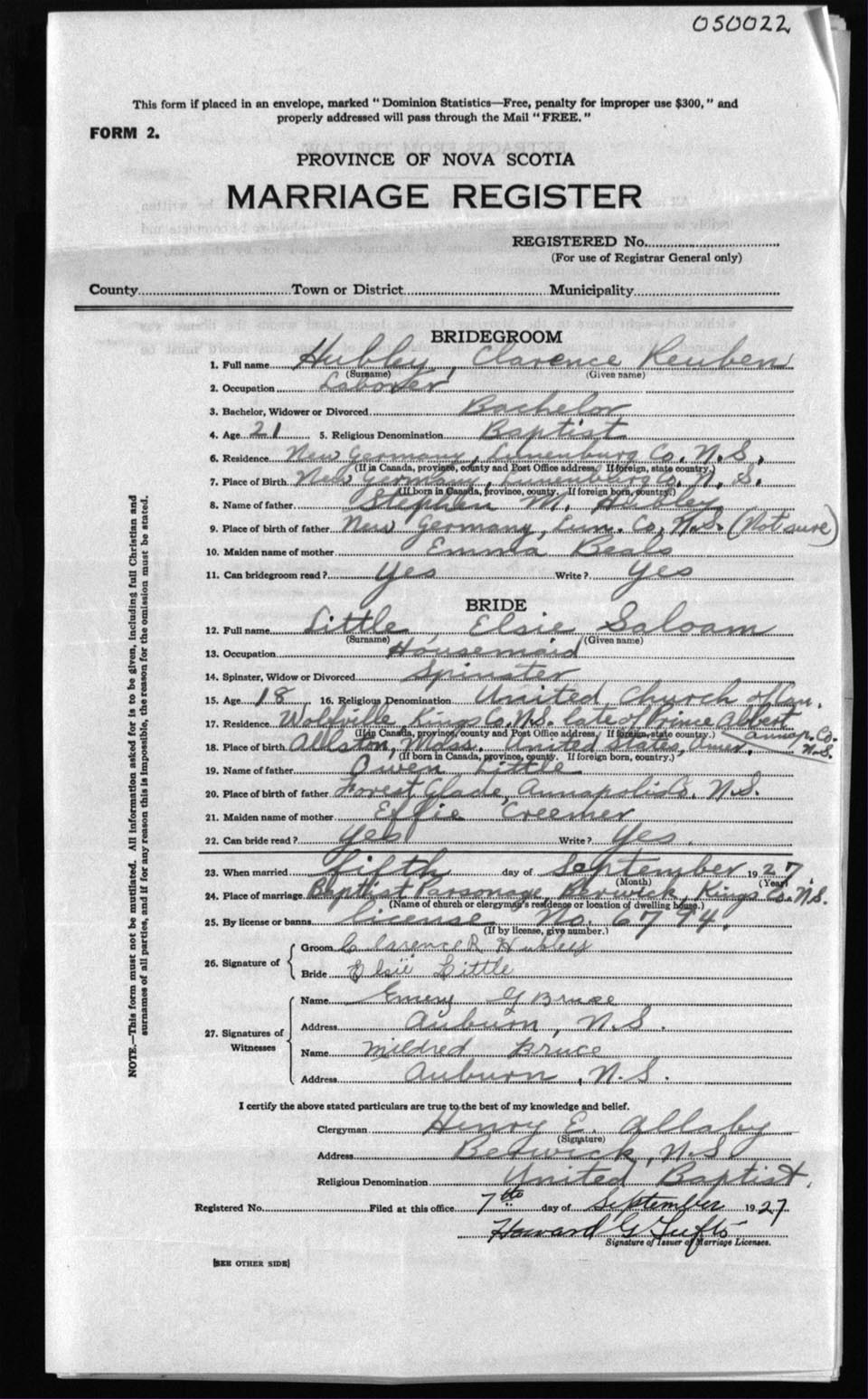Registration: Year: 1927 number: 5022