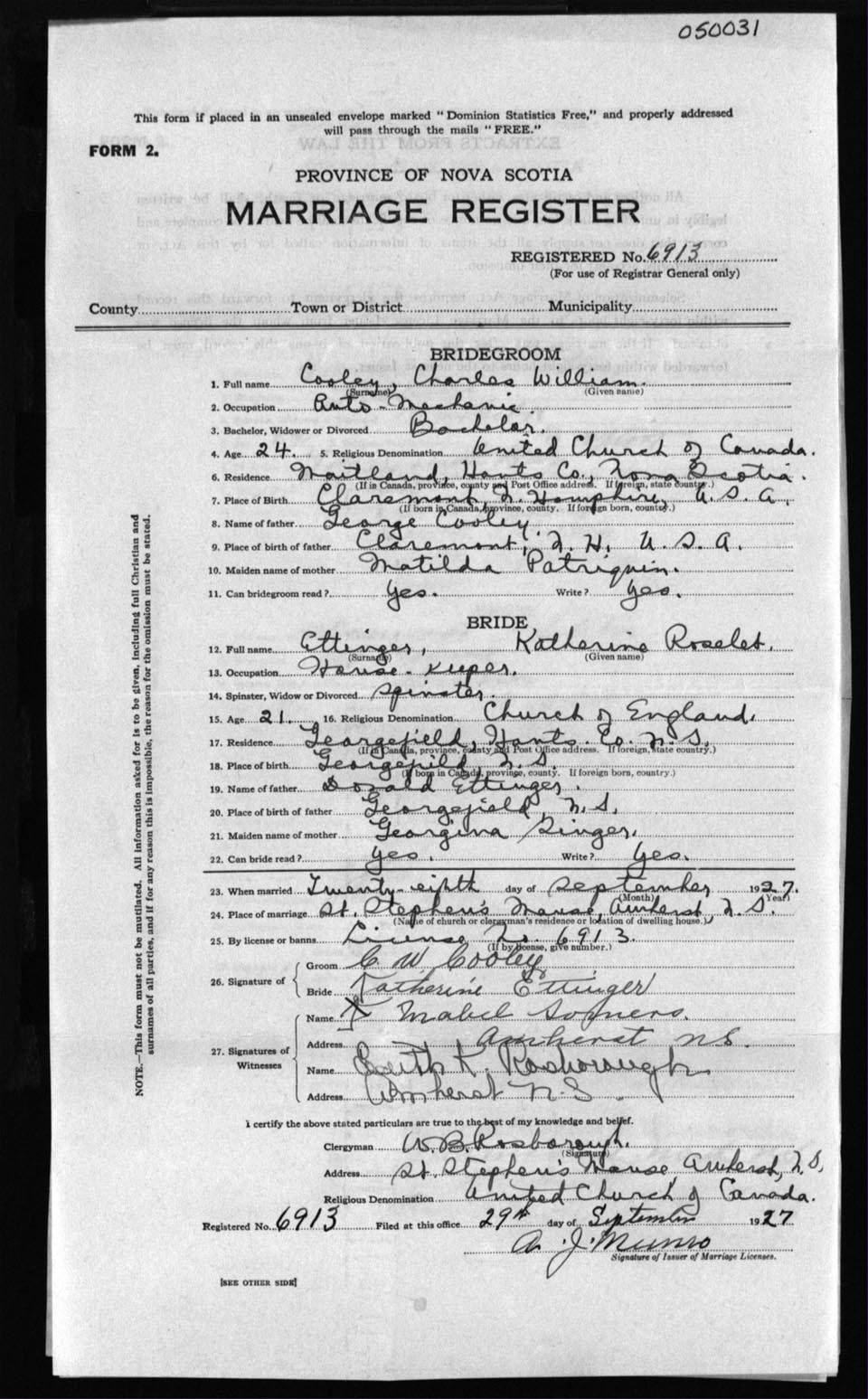 Registration: Year: 1927 number: 5031