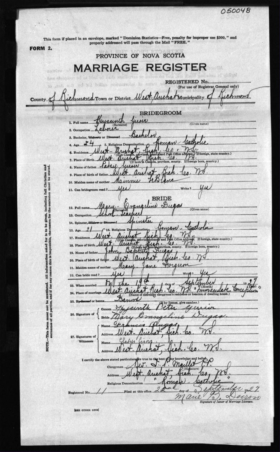 Registration: Year: 1927 number: 5048