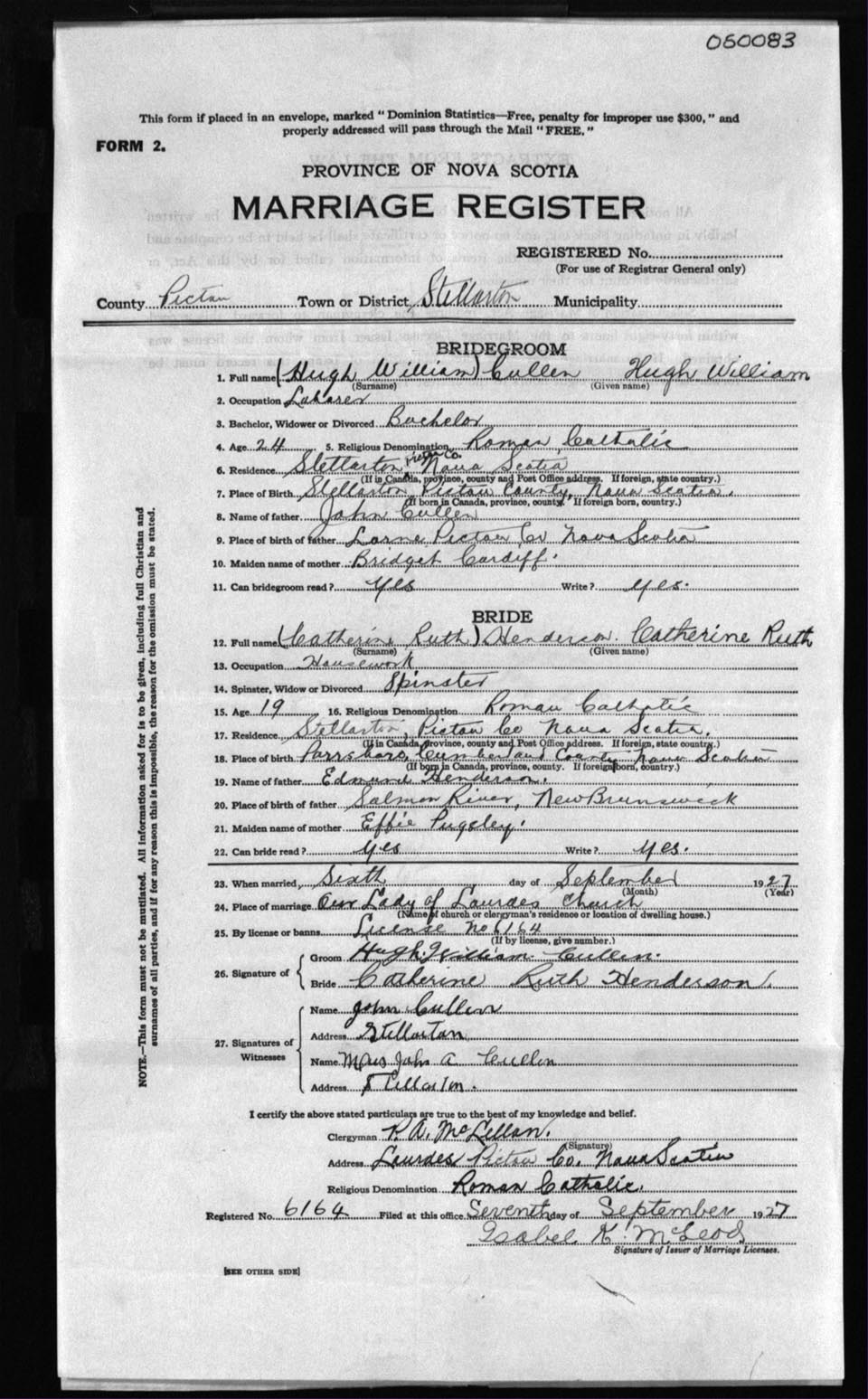 Registration: Year: 1927 number: 5083