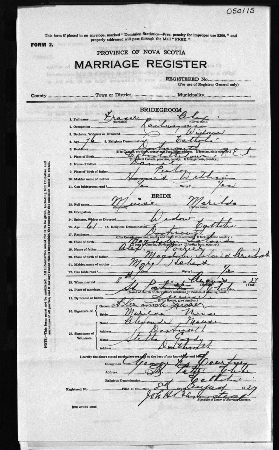 Registration: Year: 1927 number: 50115