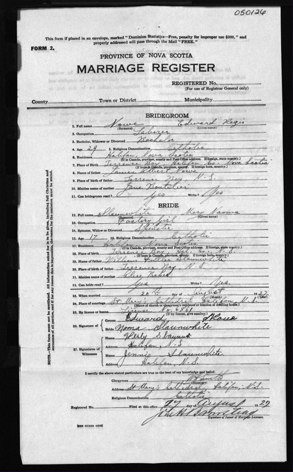 Registration: Year: 1927 number: 50126