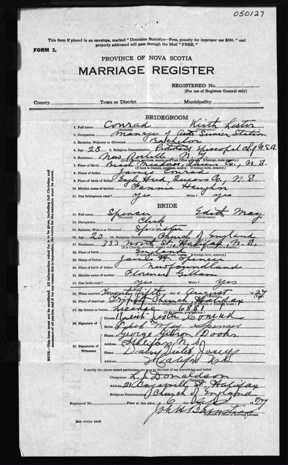 Registration: Year: 1927 number: 50127