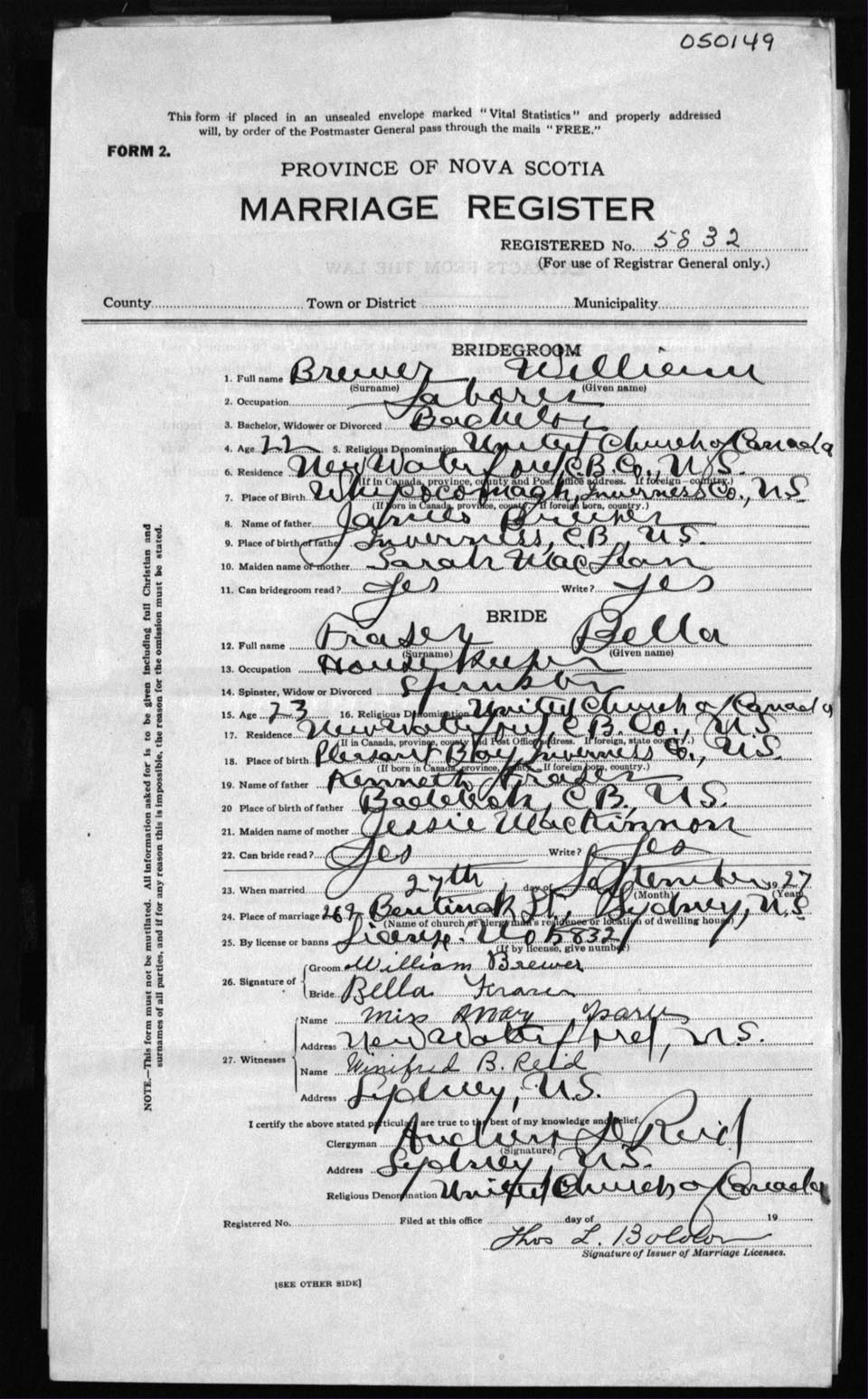 Registration: Year: 1927 number: 50149