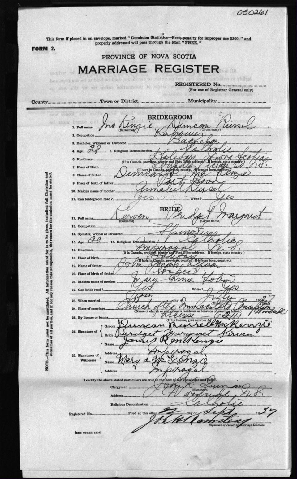 Registration: Year: 1927 number: 50261