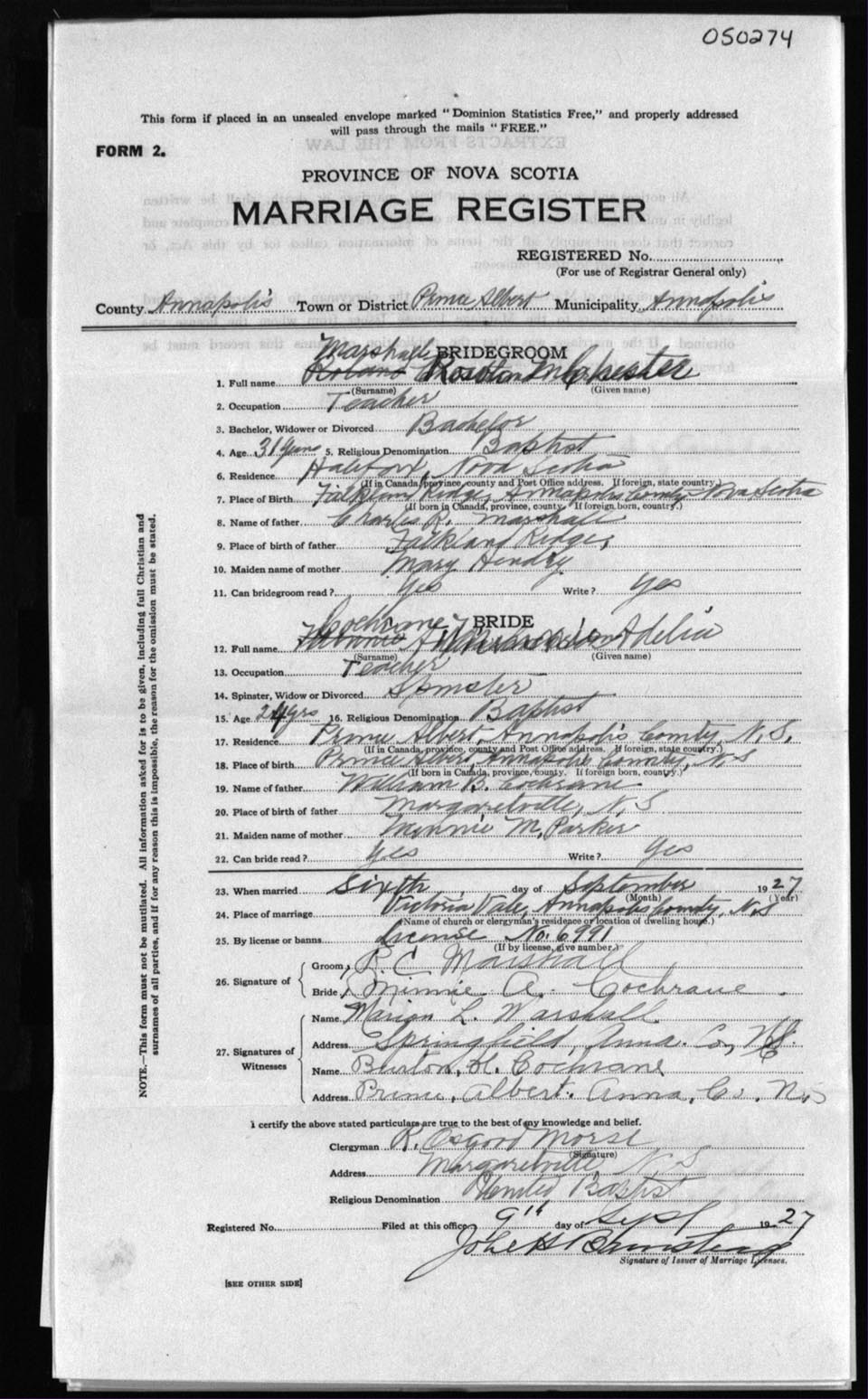 Registration: Year: 1927 number: 50274