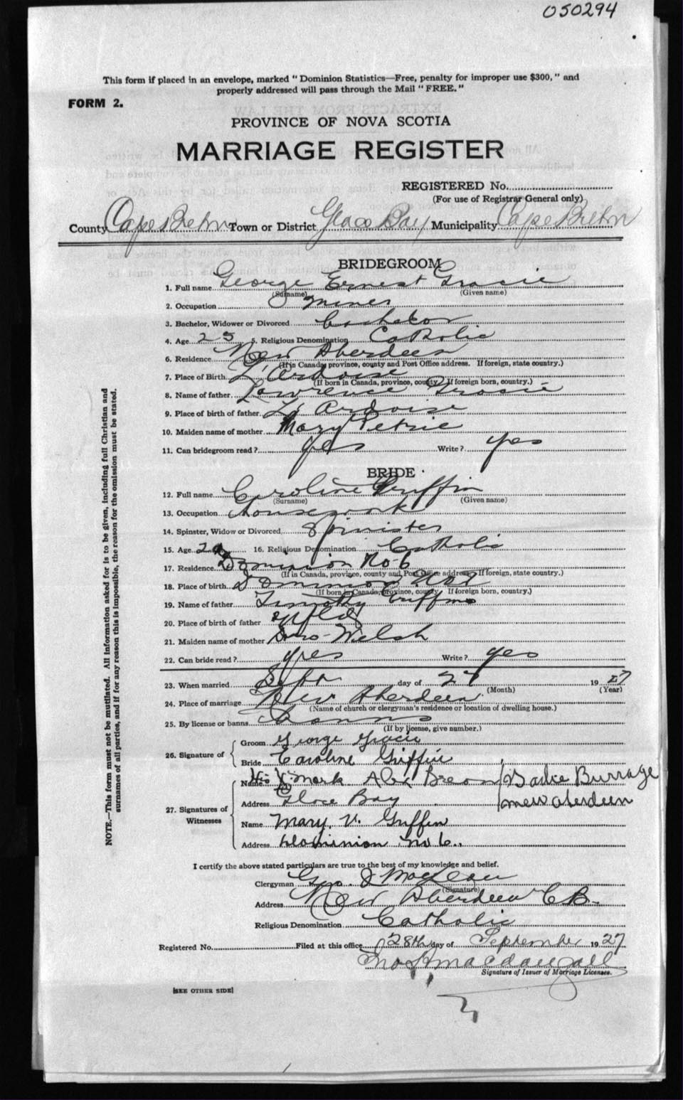 Registration: Year: 1927 number: 50294