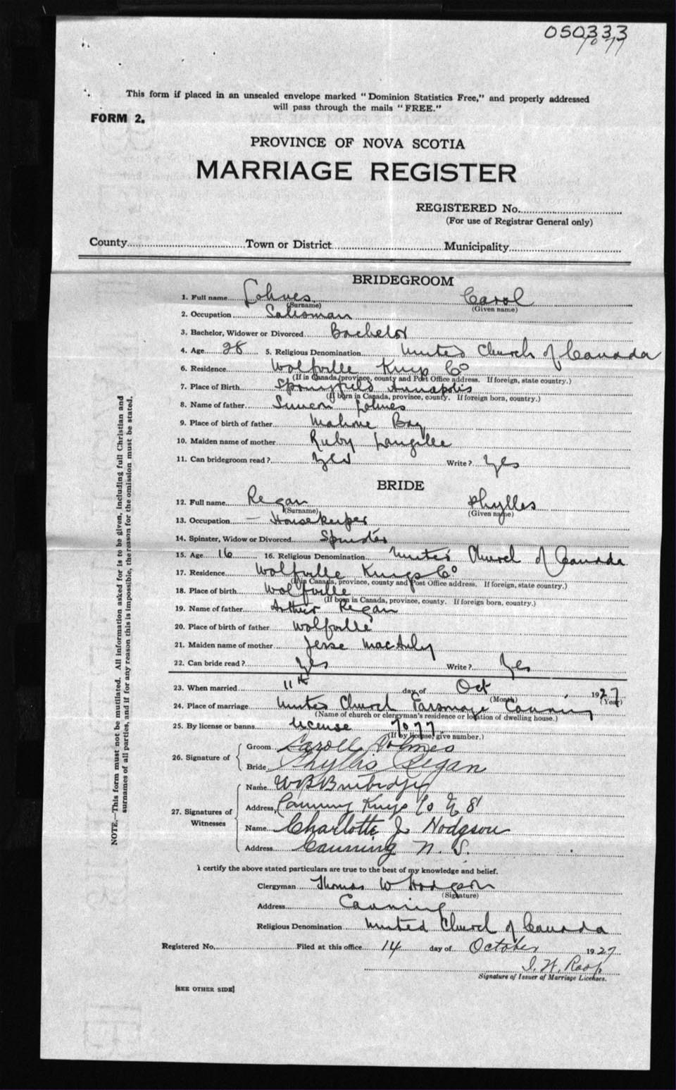 Registration: Year: 1927 number: 50333