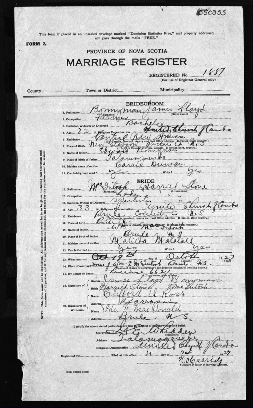 Registration: Year: 1927 number: 50355