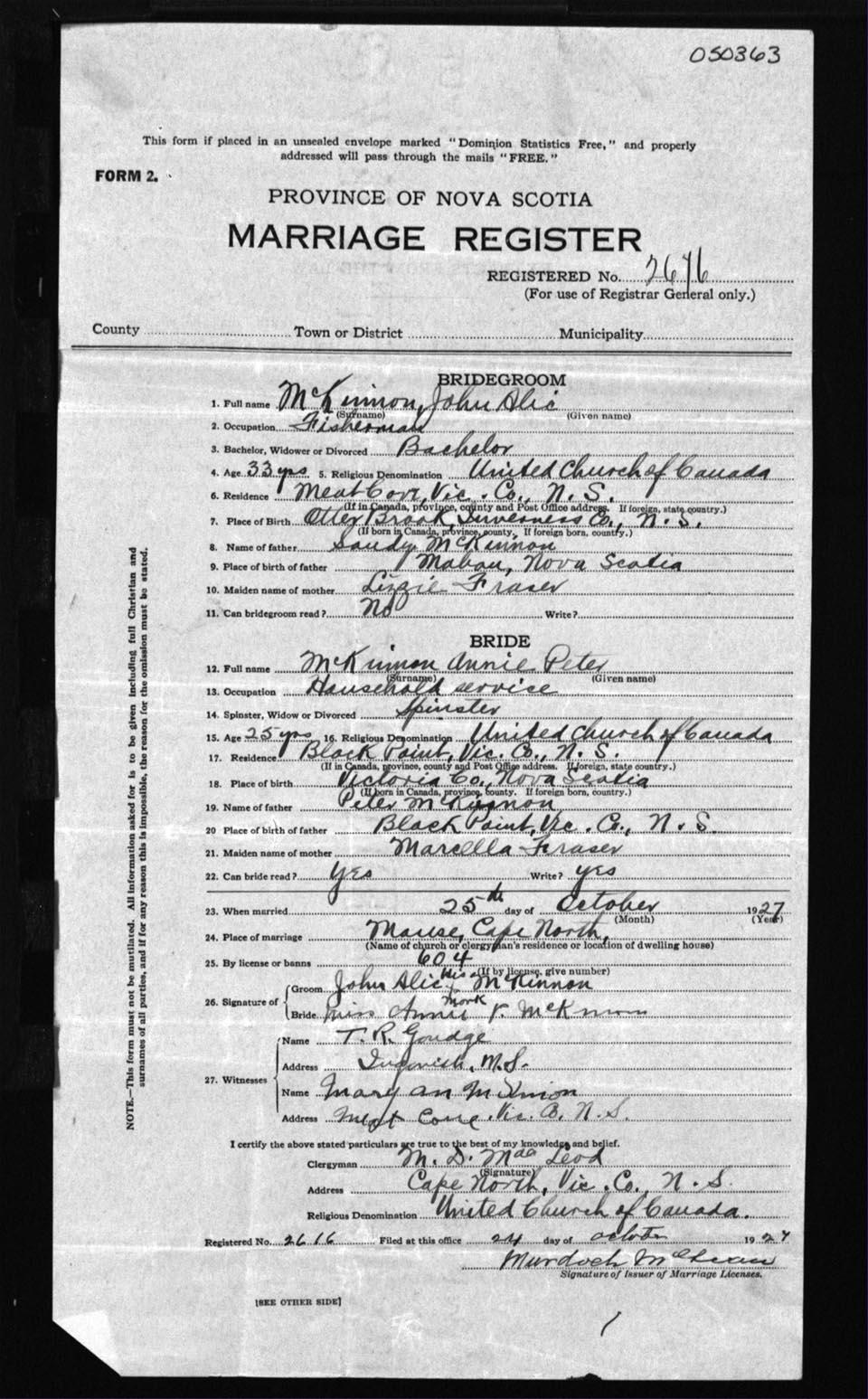 Registration: Year: 1927 number: 50363