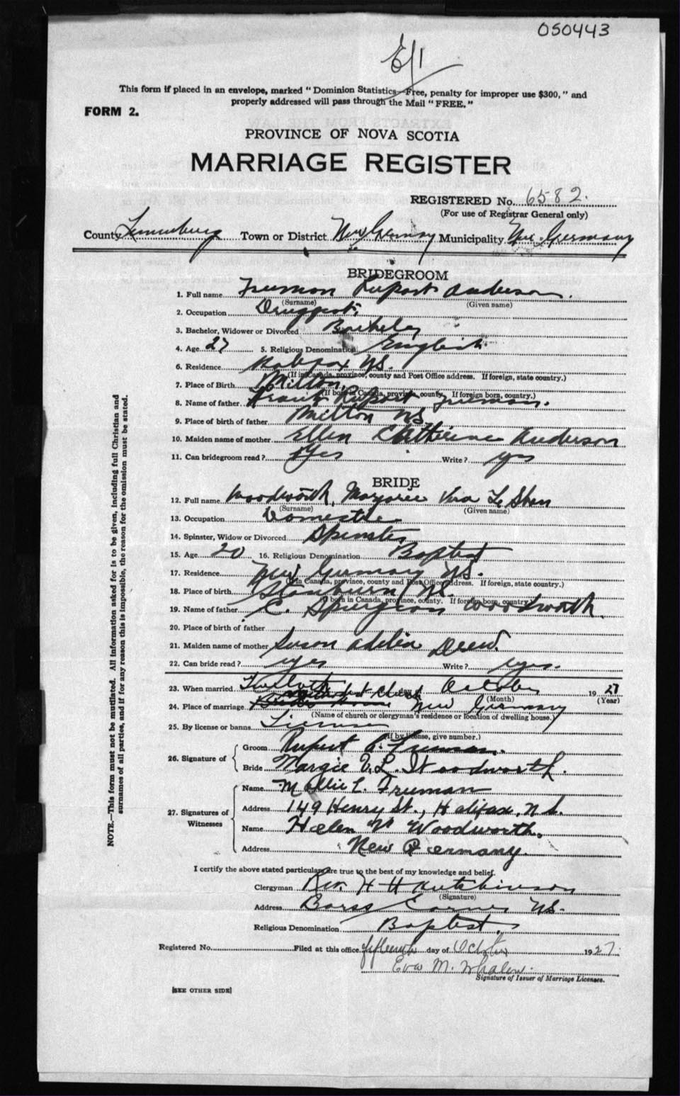 Registration: Year: 1927 number: 50443