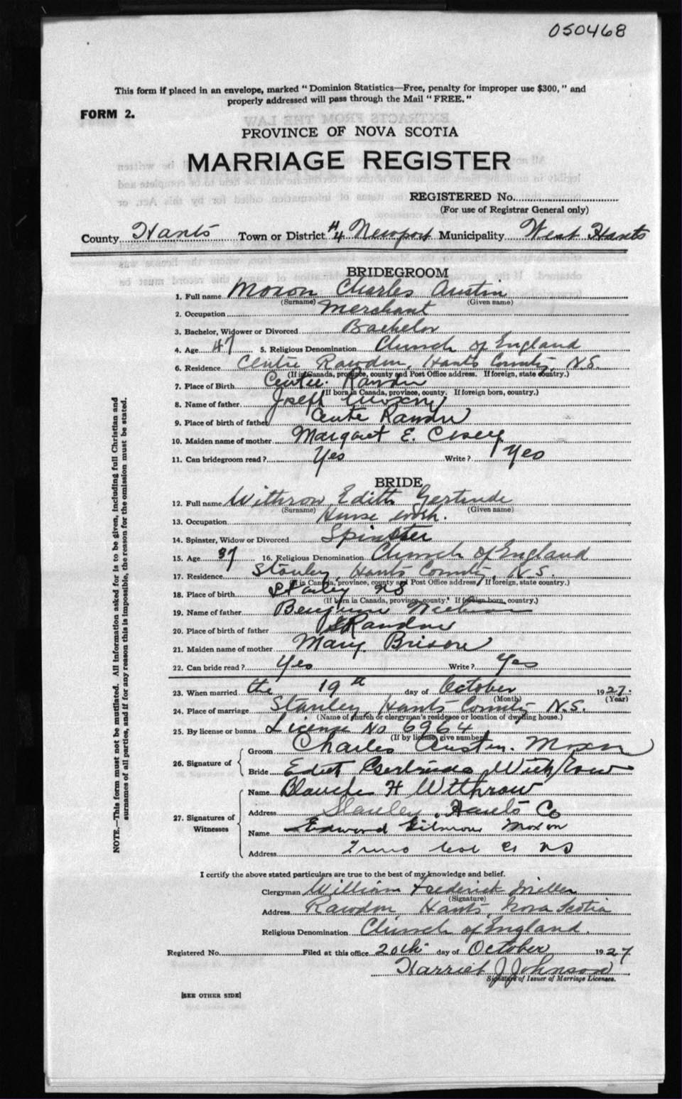 Registration: Year: 1927 number: 50468