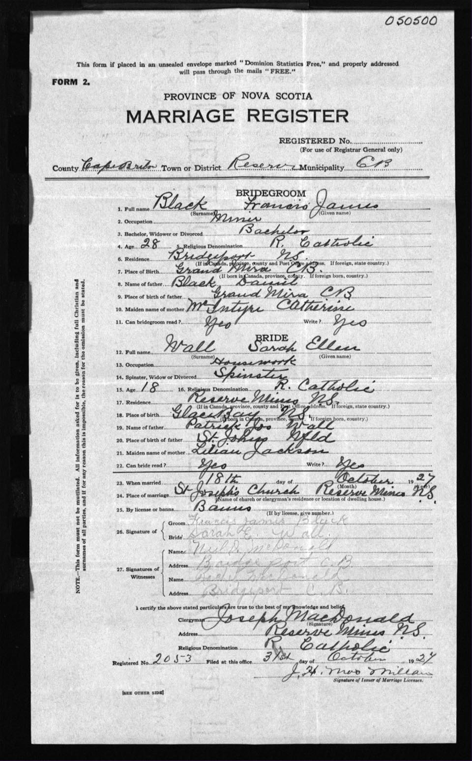 Registration: Year: 1927 number: 50500