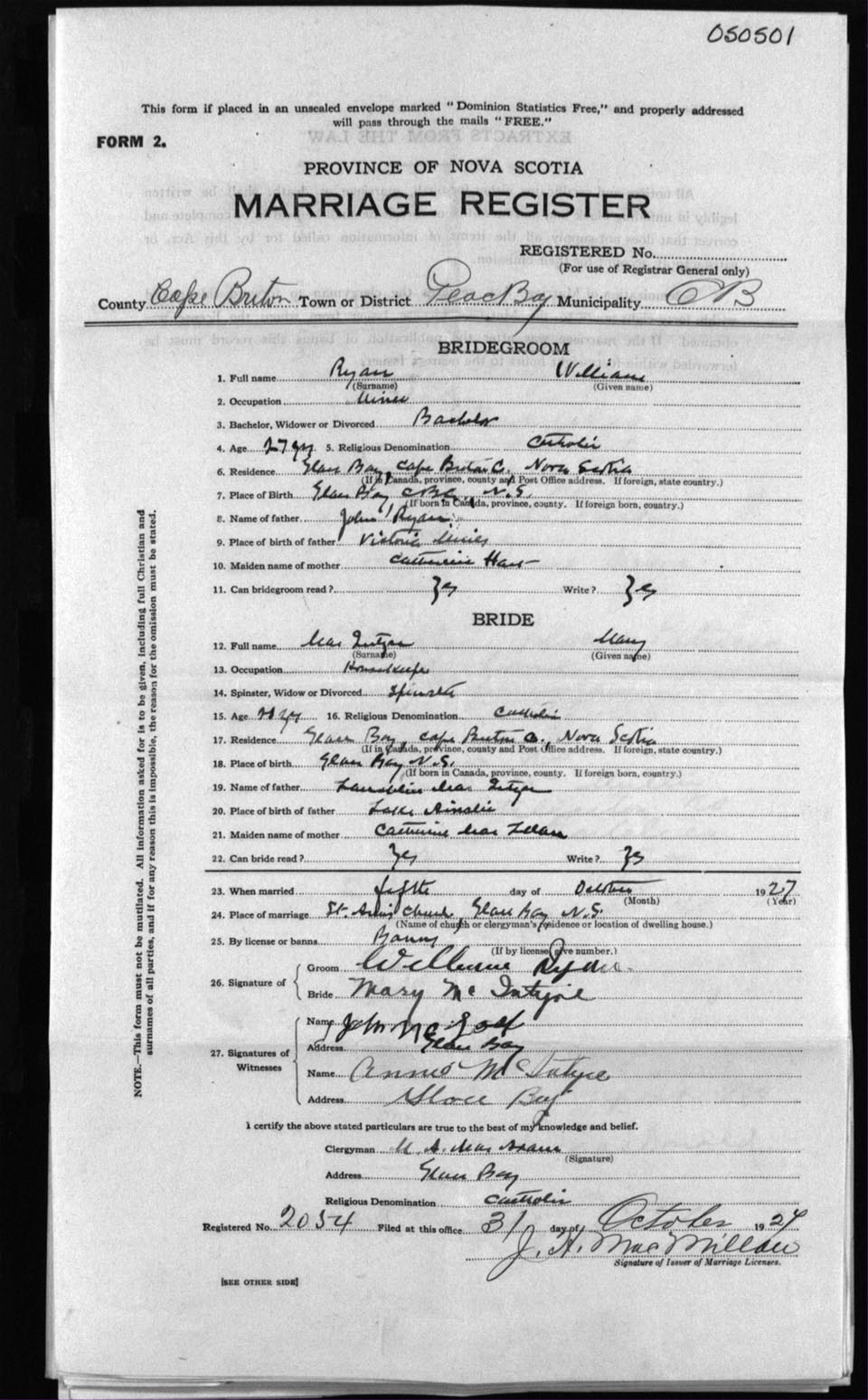Registration: Year: 1927 number: 50501