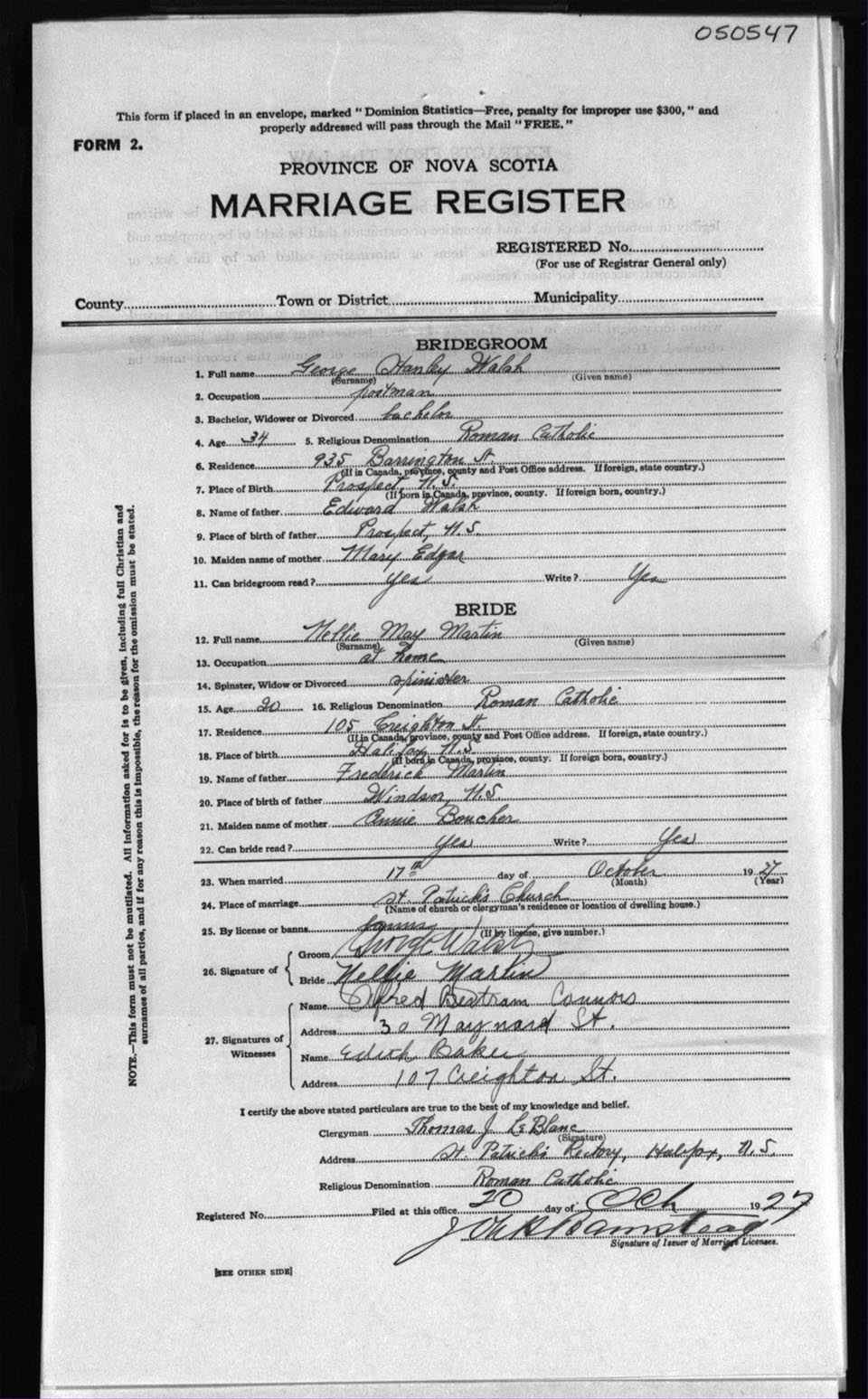 Registration: Year: 1927 number: 50547