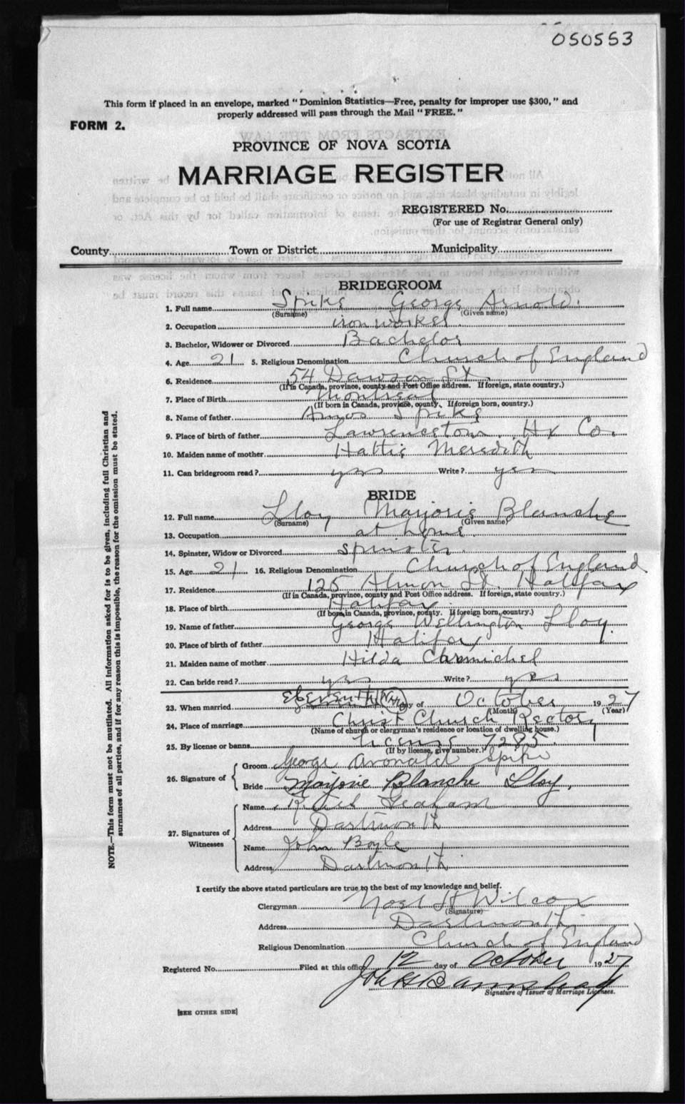 Registration: Year: 1927 number: 50553