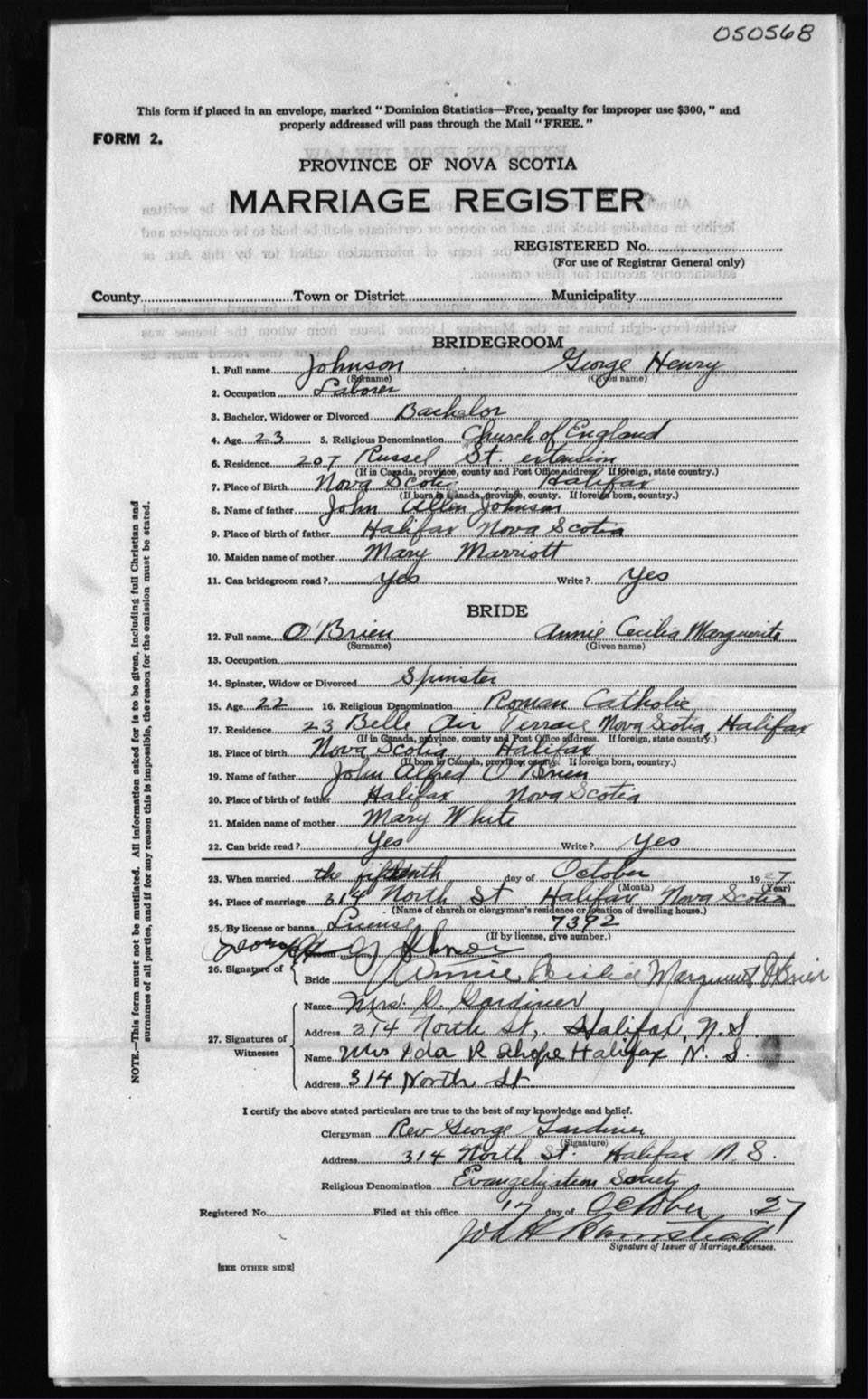 Registration: Year: 1927 number: 50568