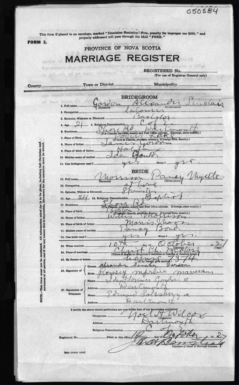 Registration: Year: 1927 number: 50584
