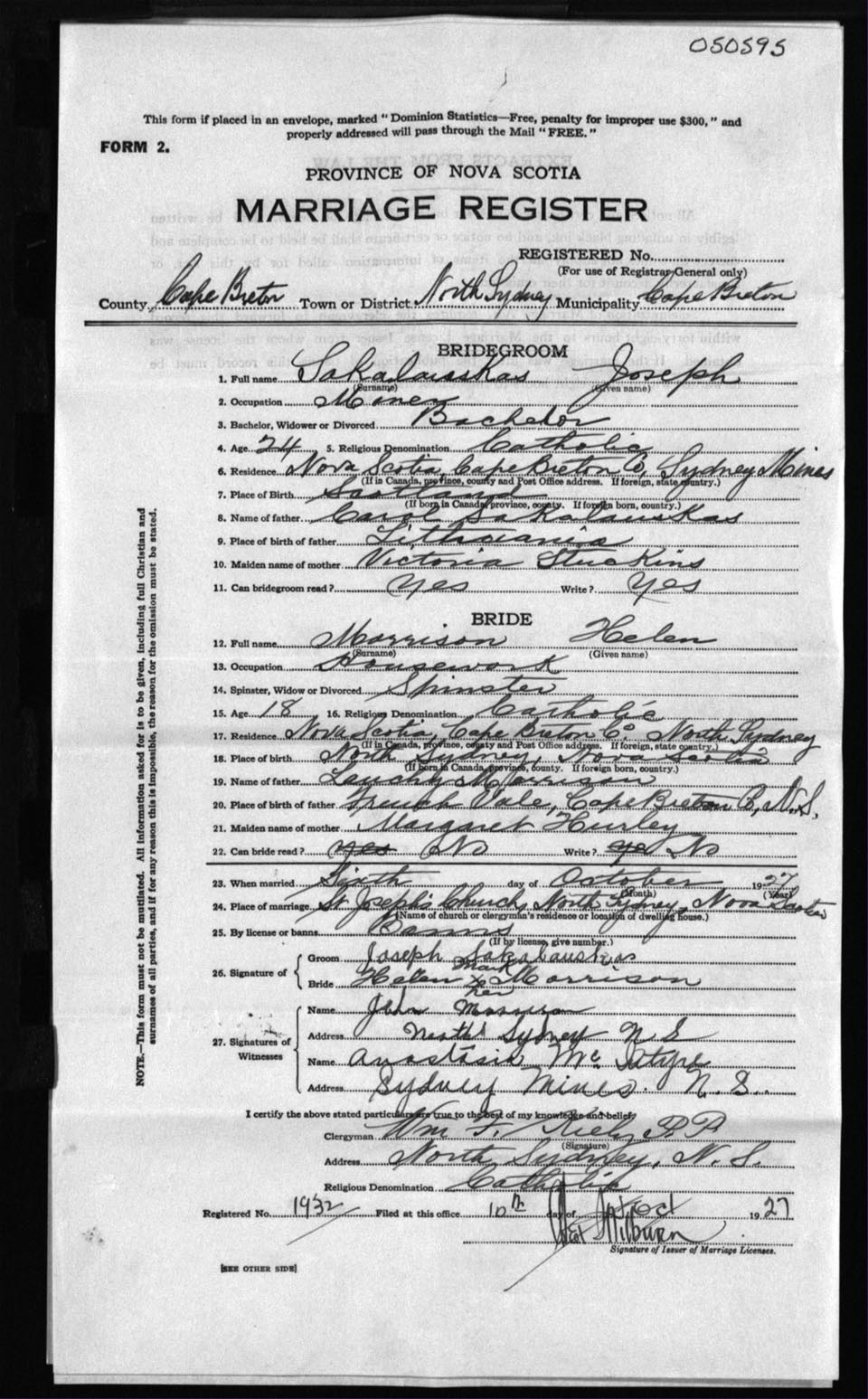 Registration: Year: 1927 number: 50595