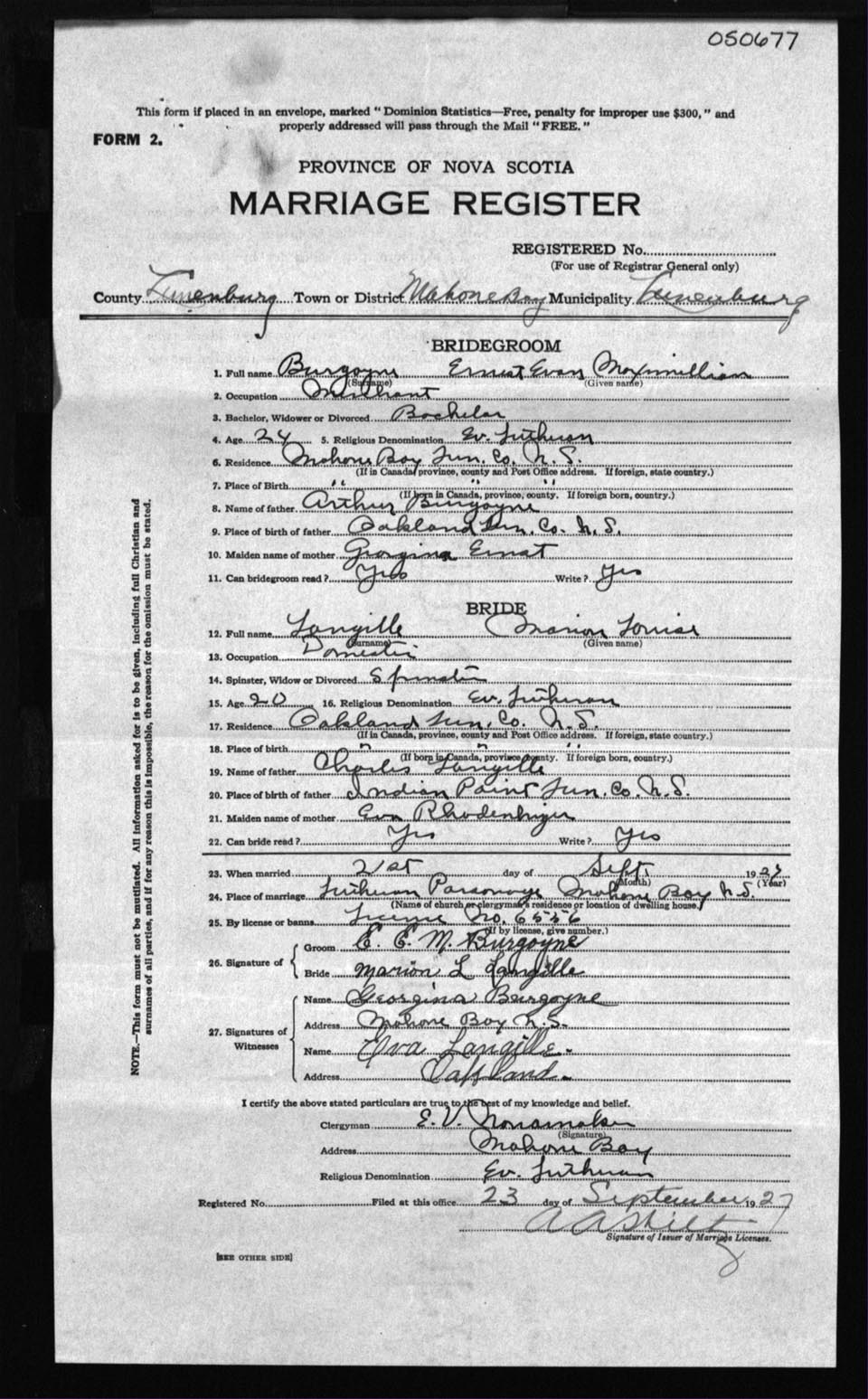 Registration: Year: 1927 number: 50677