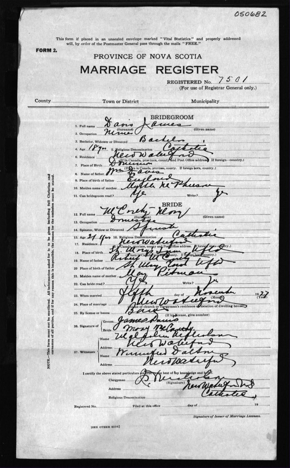 Registration: Year: 1927 number: 50682