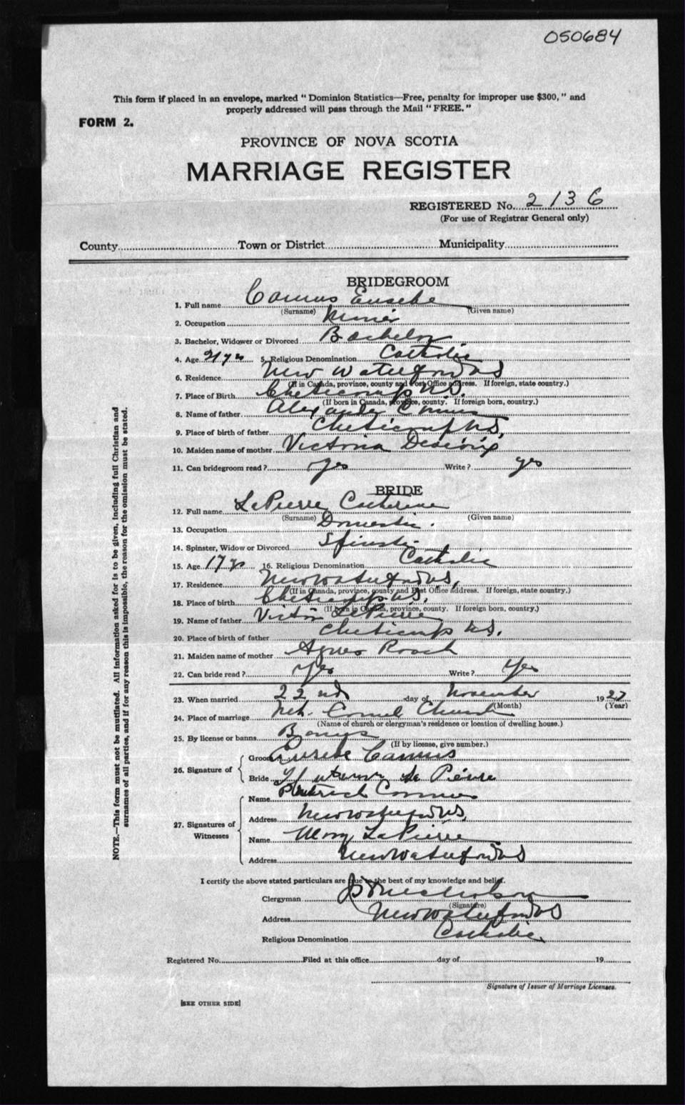 Registration: Year: 1927 number: 50684