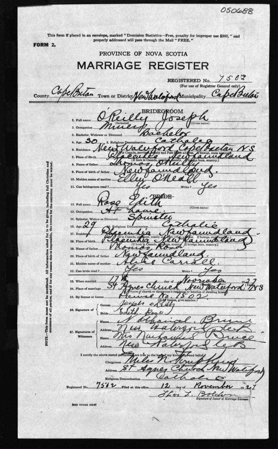 Registration: Year: 1927 number: 50688