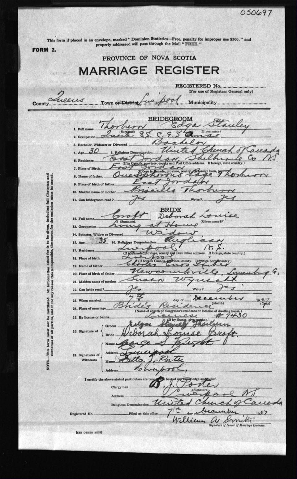 Registration: Year: 1927 number: 50697