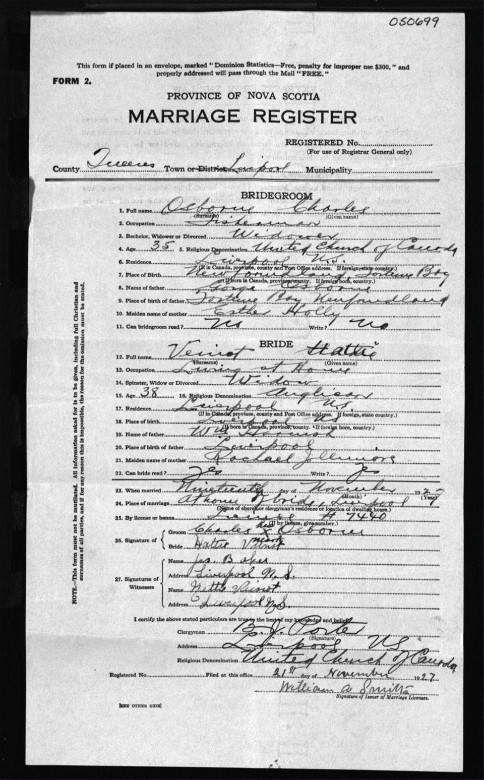 Registration: Year: 1927 number: 50699