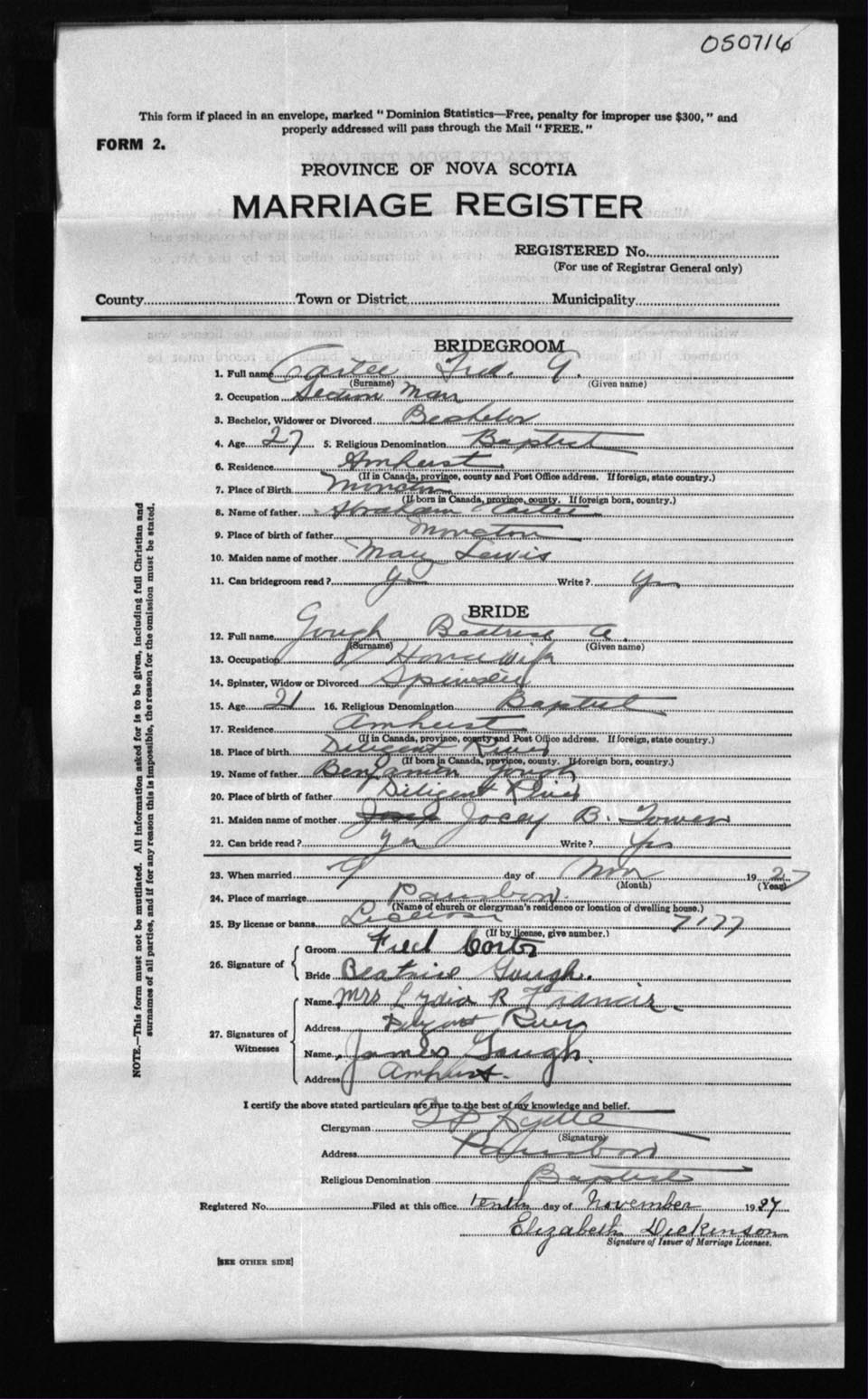 Registration: Year: 1927 number: 50716