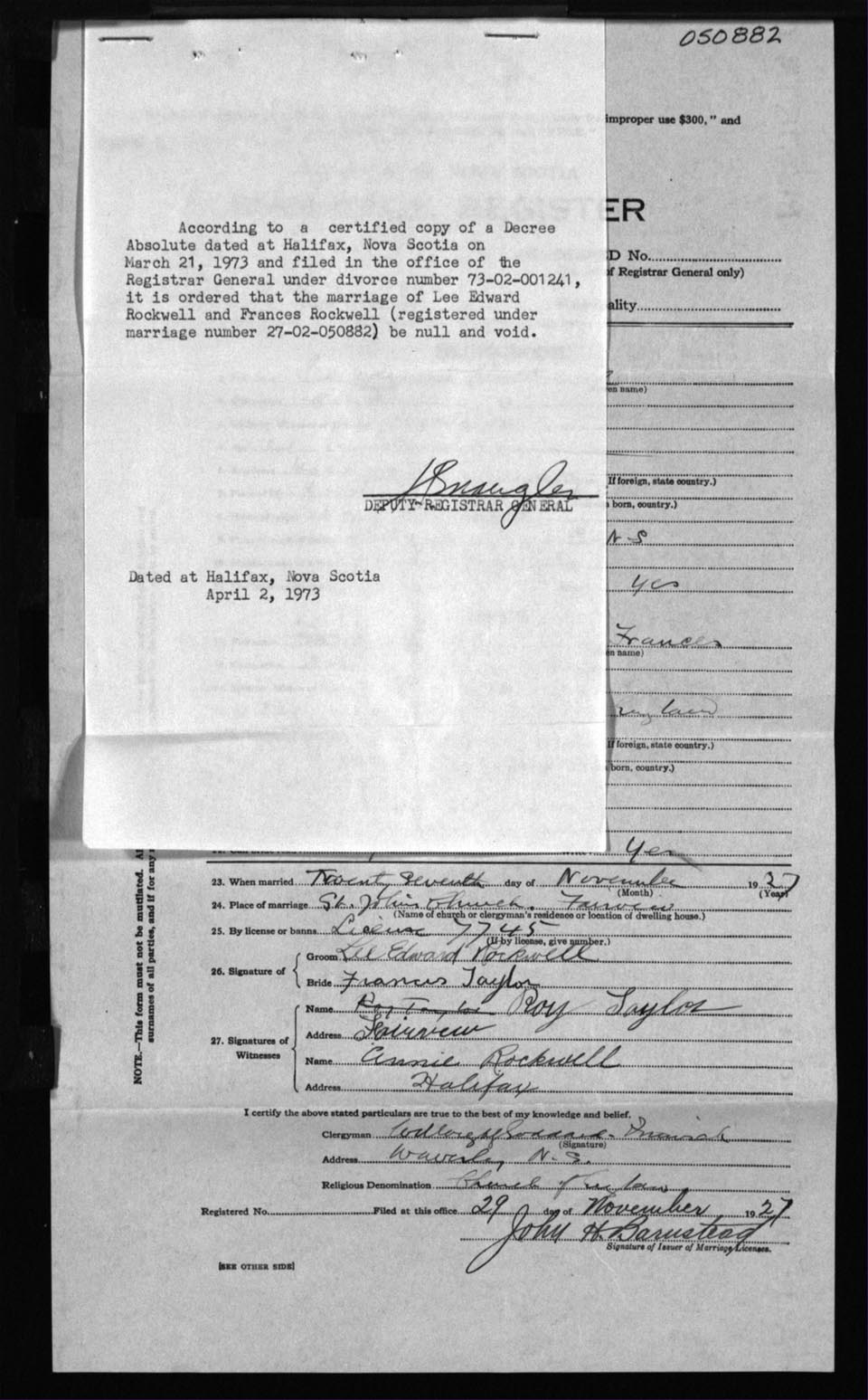 Registration: Year: 1927 number: 50882