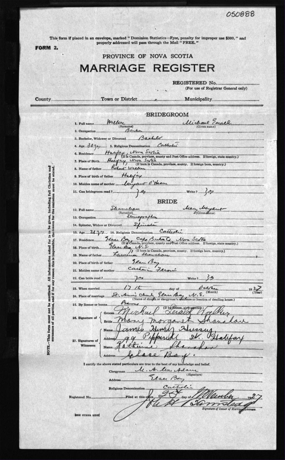 Registration: Year: 1927 number: 50888