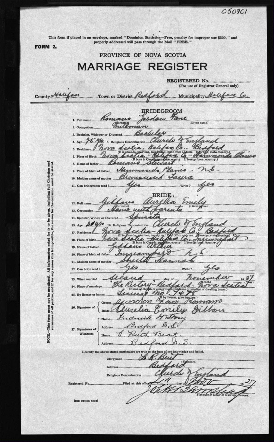 Registration: Year: 1927 number: 50901