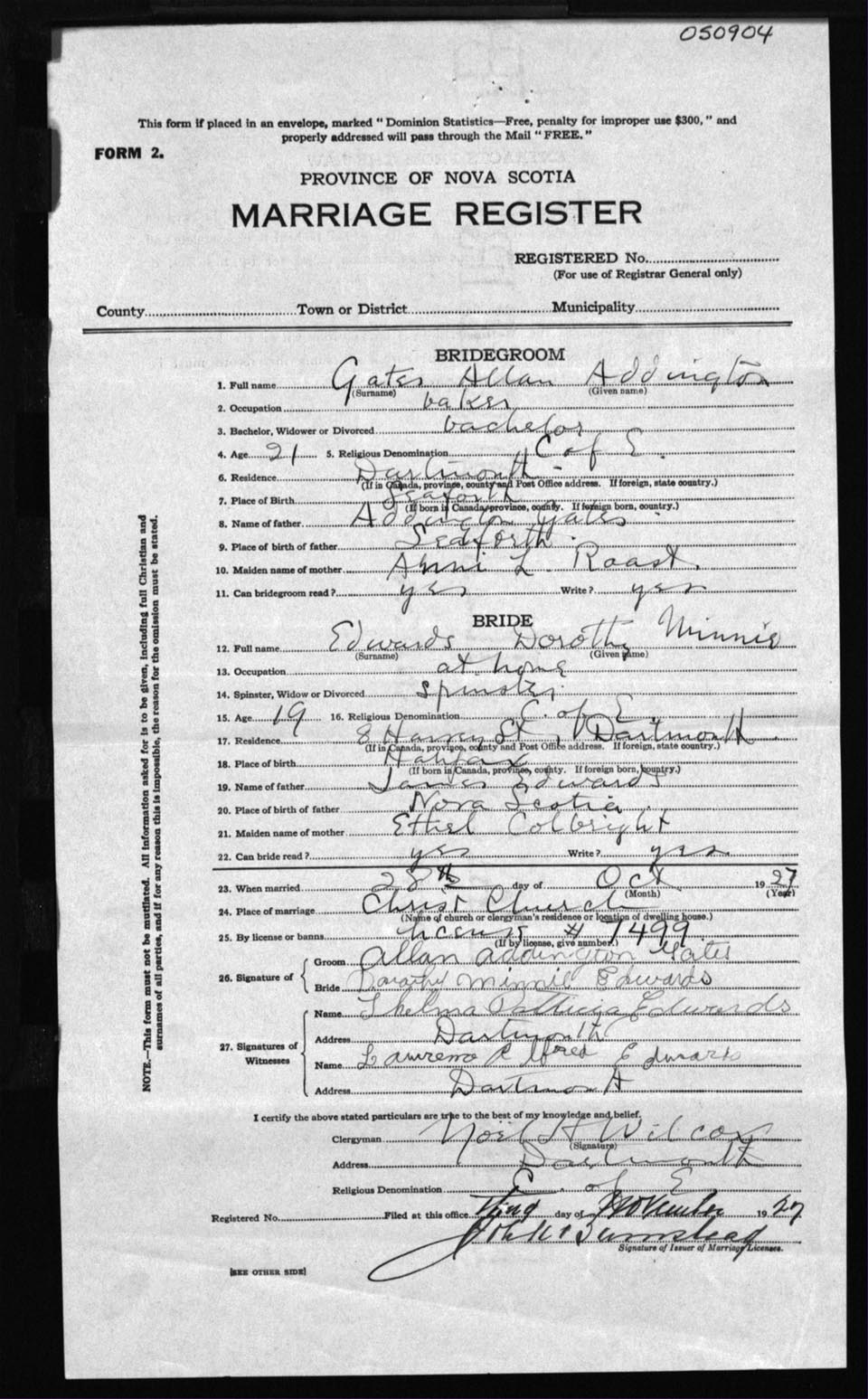 Registration: Year: 1927 number: 50904
