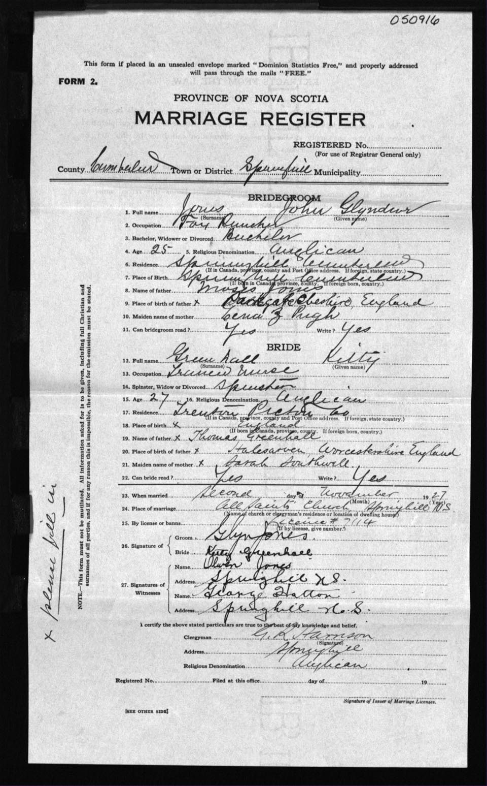 Registration: Year: 1927 number: 50916