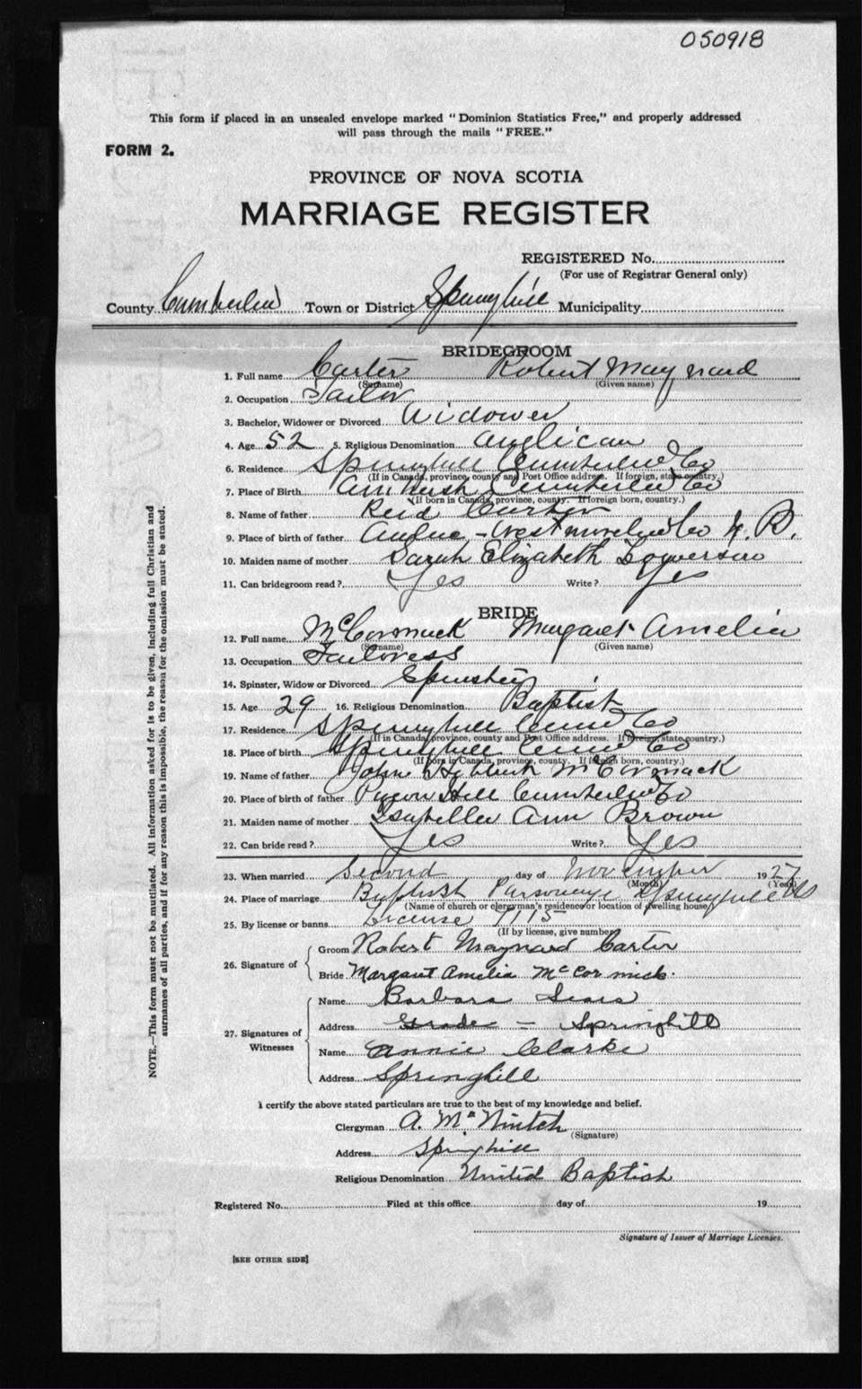 Registration: Year: 1927 number: 50918