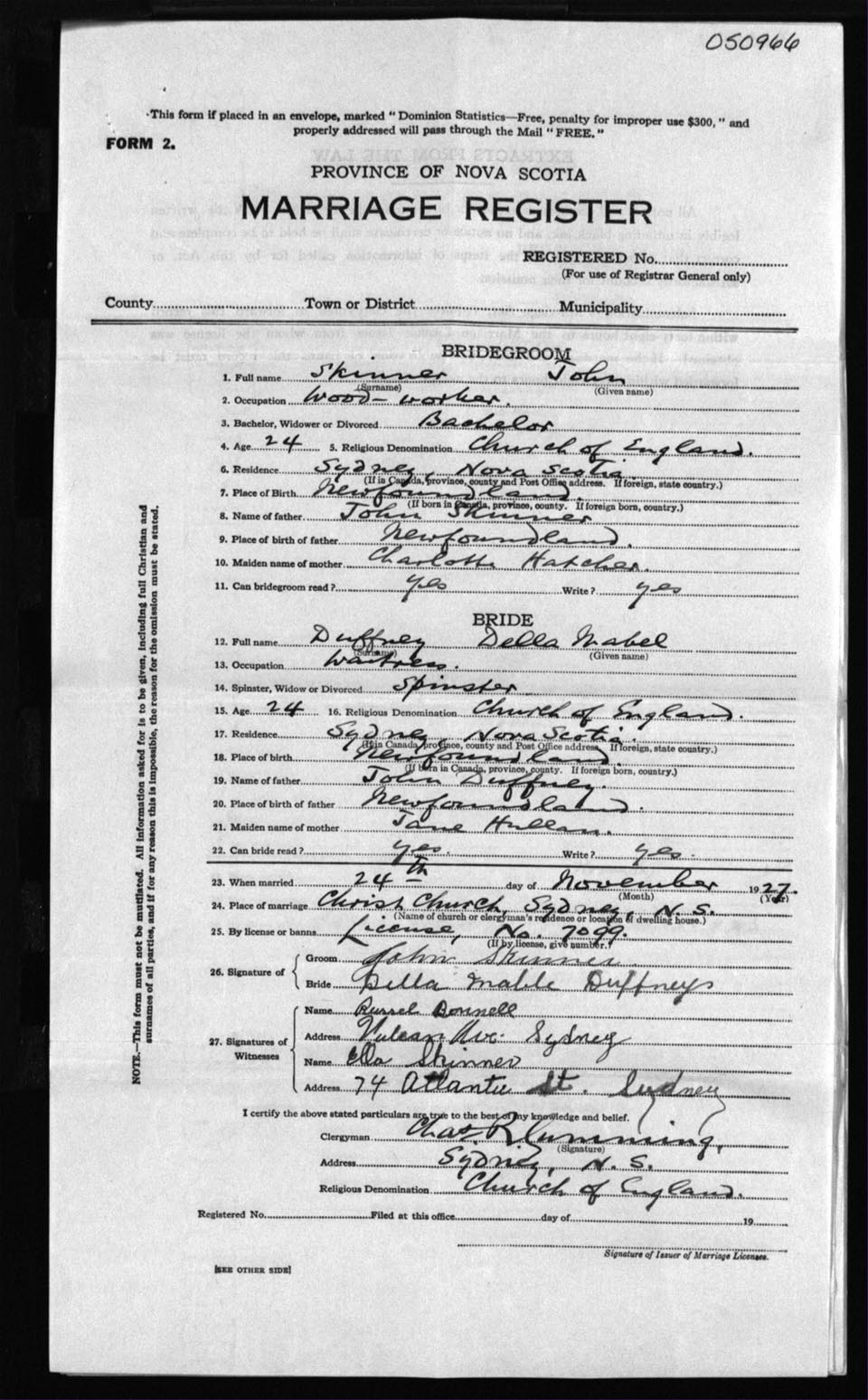 Registration: Year: 1927 number: 50966