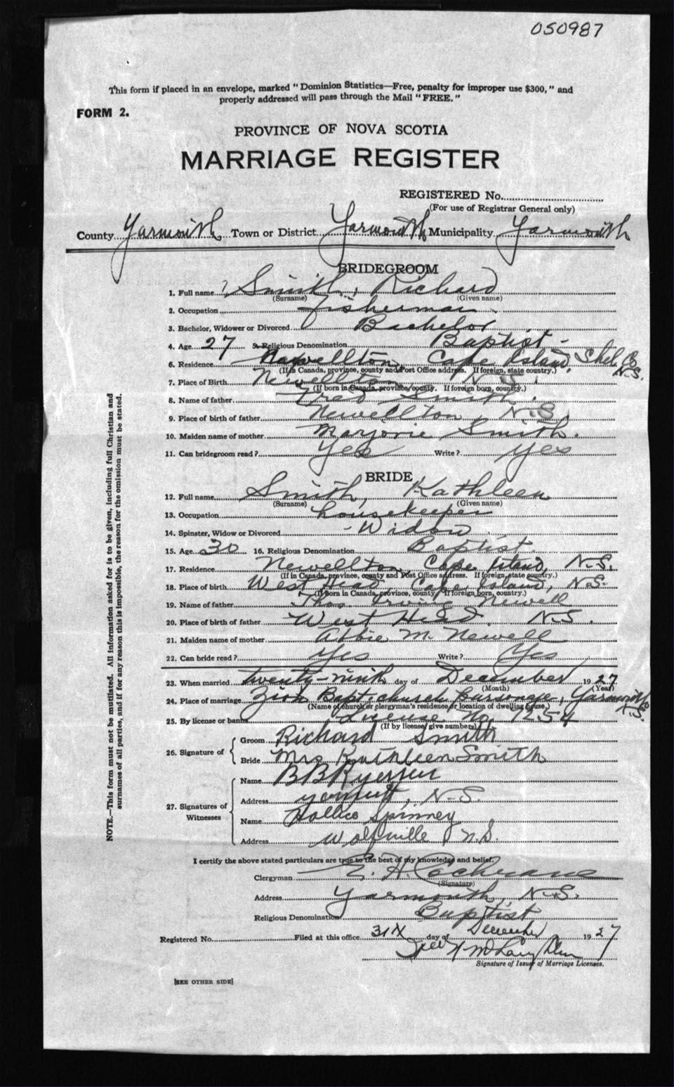 Registration: Year: 1927 number: 50987