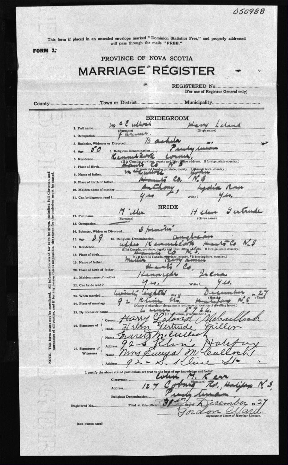 Registration: Year: 1927 number: 50988